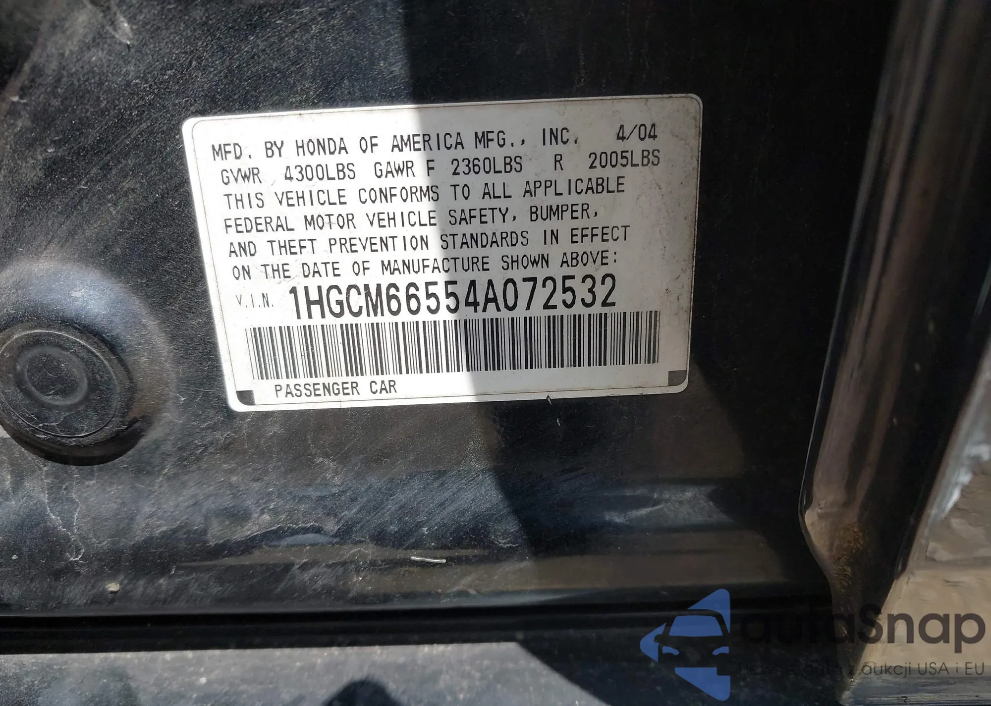 VIN: 1HGCM66554A072532