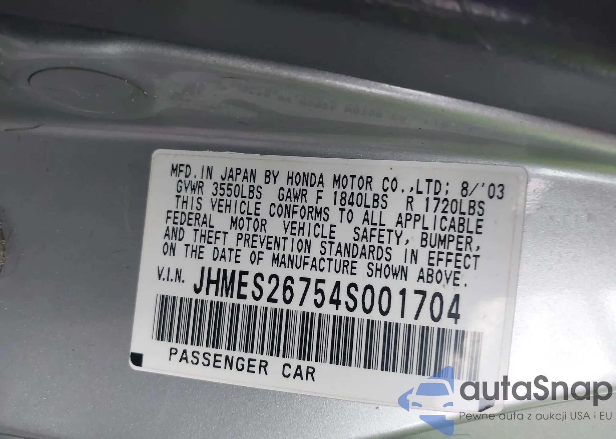 VIN: JHMES26754S001704