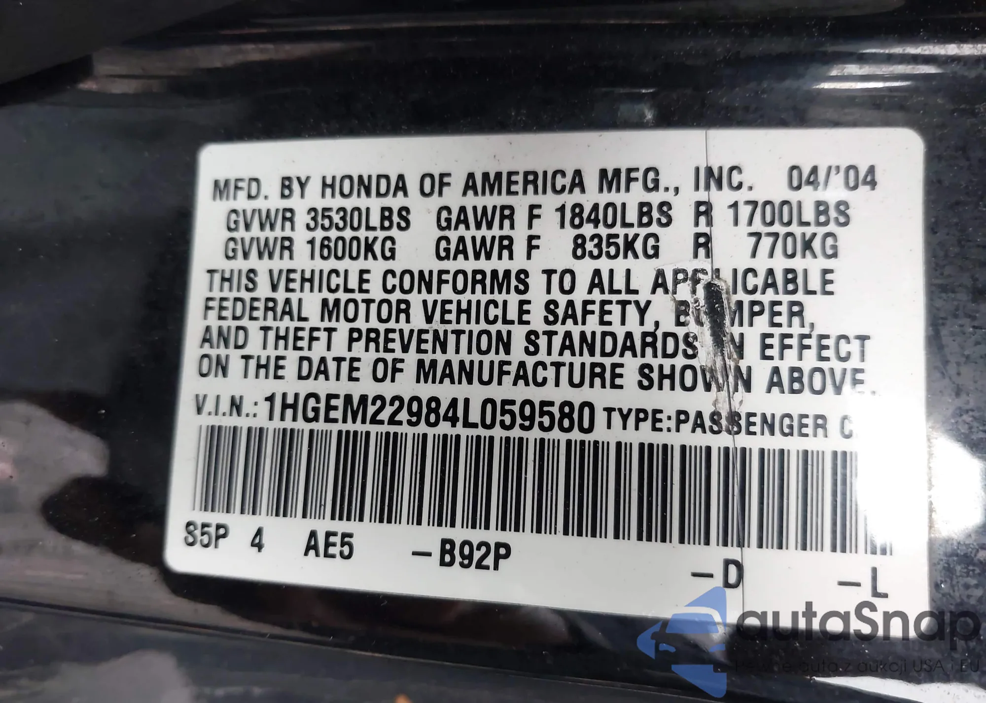 VIN: 1HGEM22984L059580