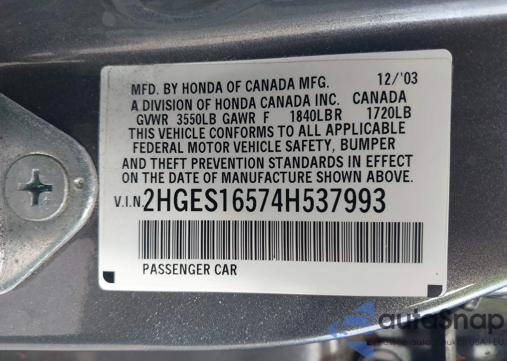 Honda Civic 2004 – Historia pojazdu (sprzedany na IAAI)