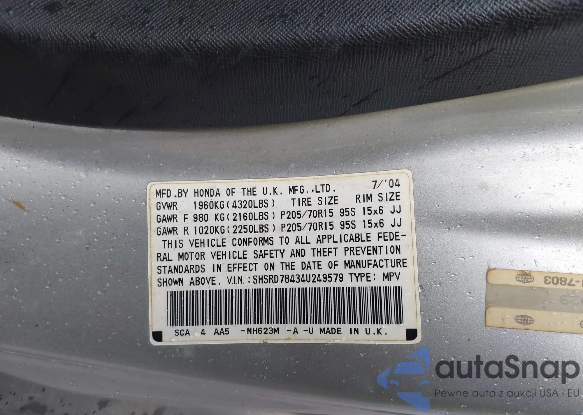 VIN: SHSRD78434U249579