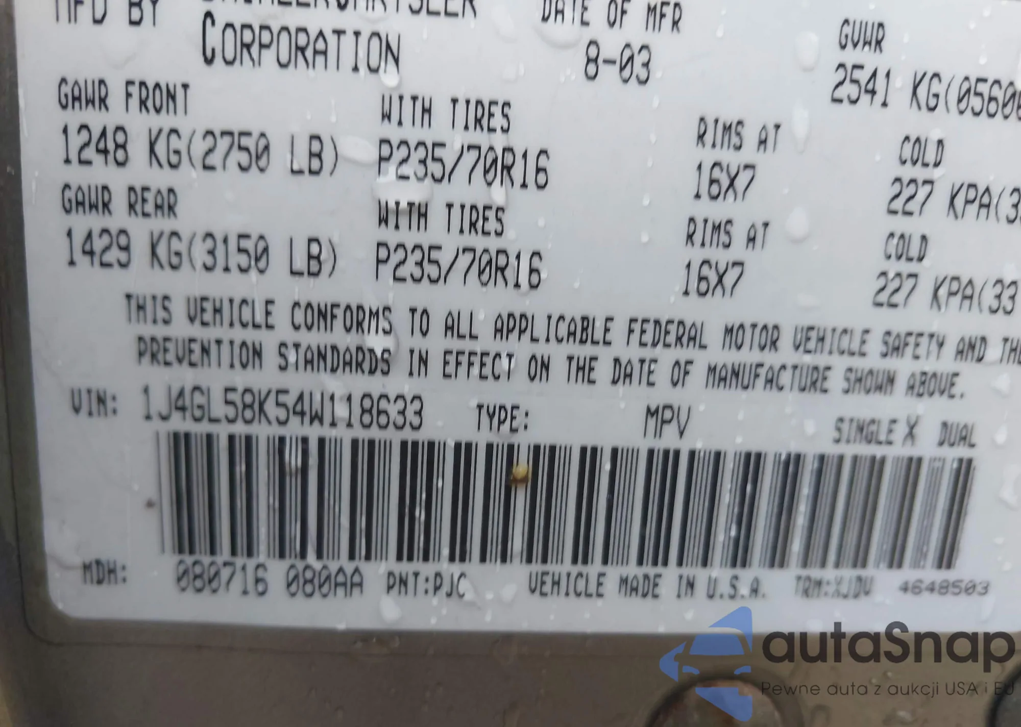 VIN: 1J4GL58K54W118633