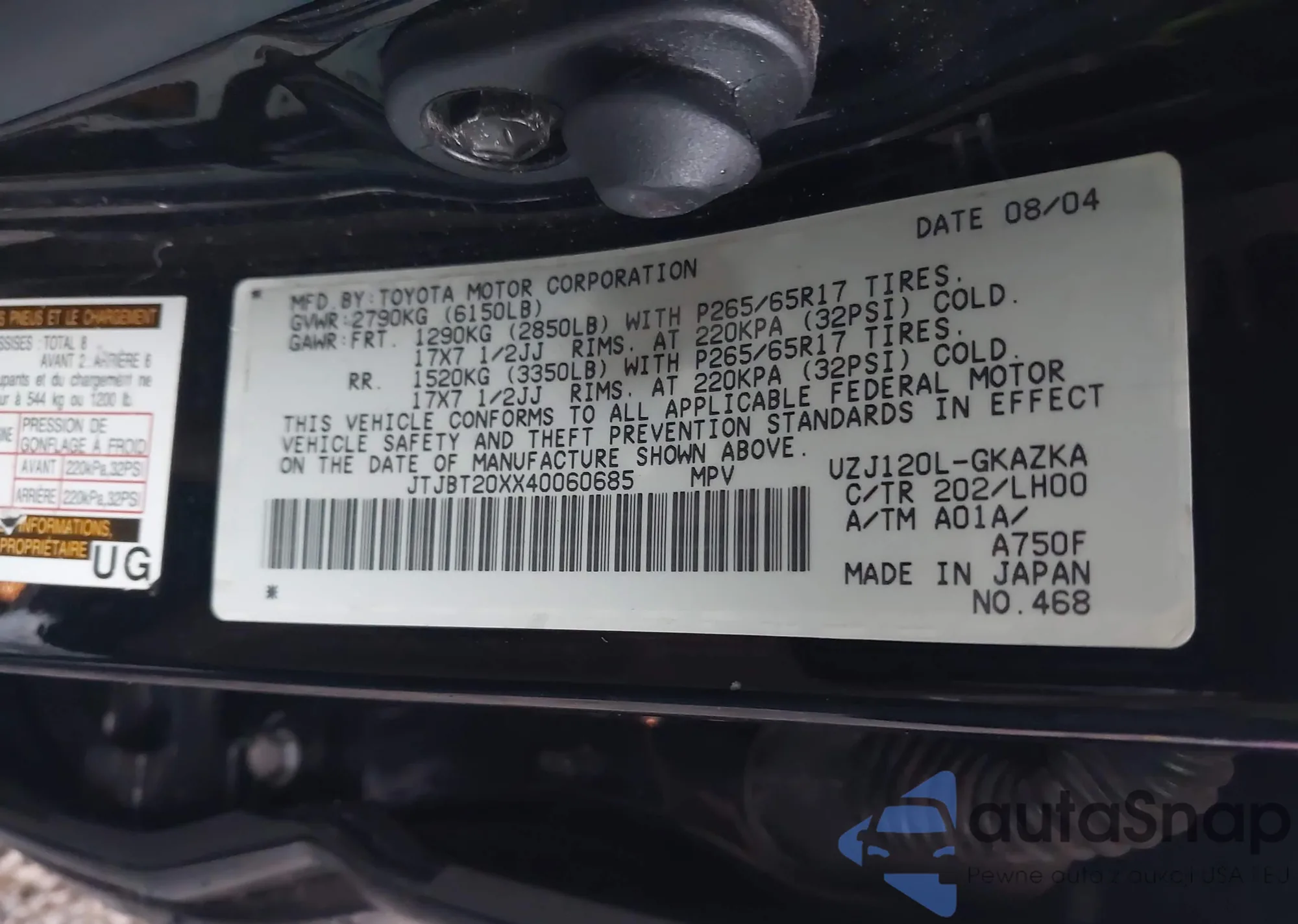 VIN: JTJBT20XX40060685