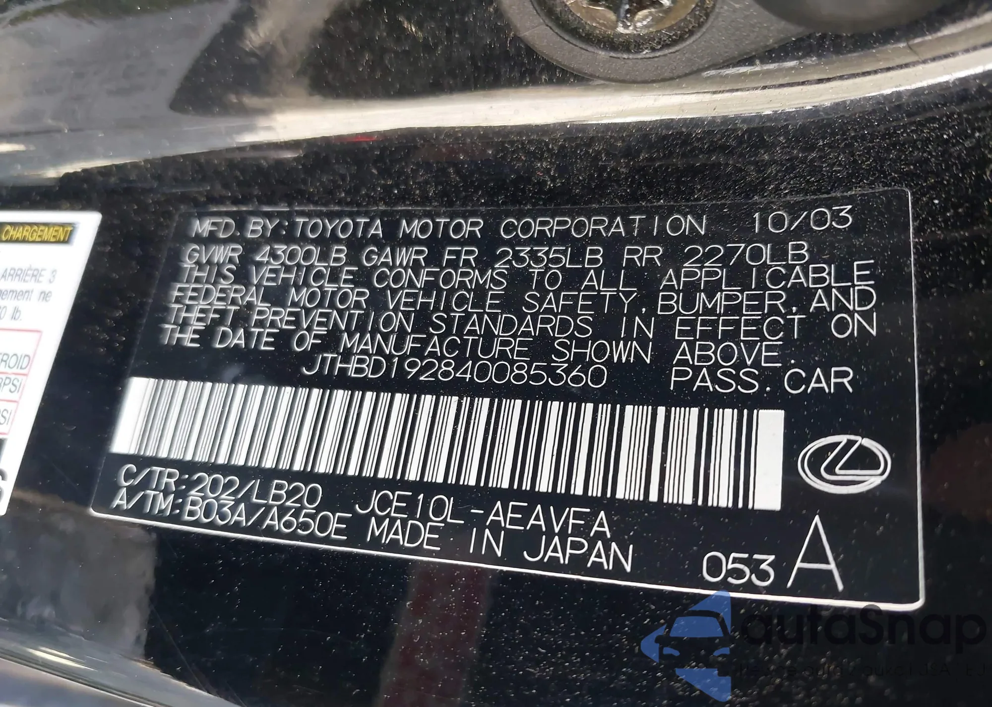 VIN: JTHBD192840085360