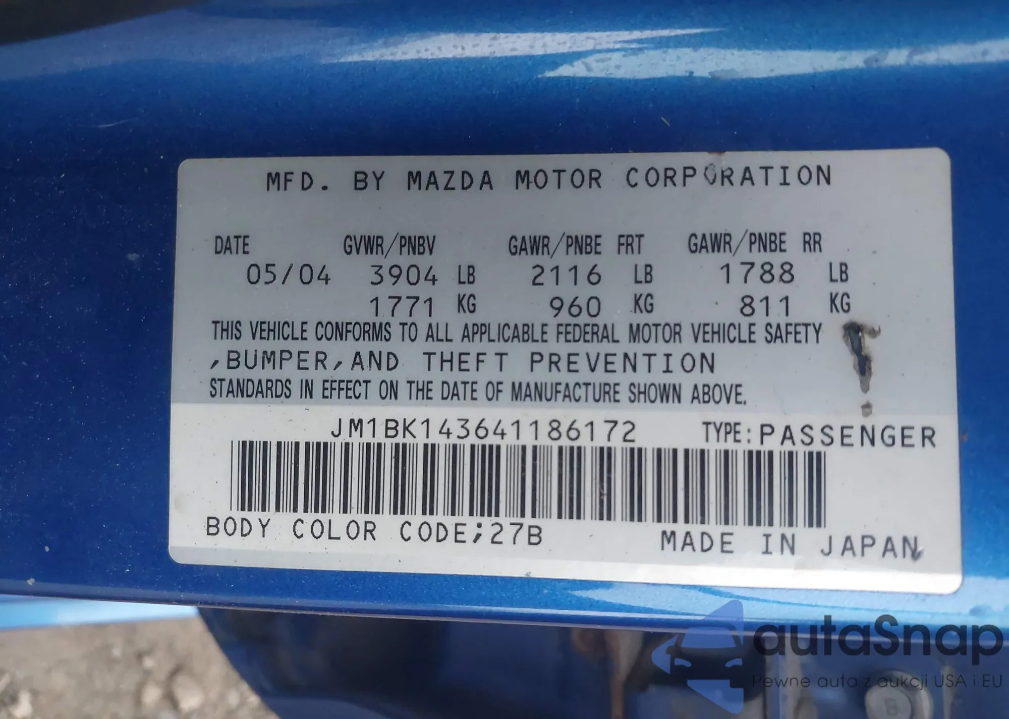 VIN: JM1BK143641186172