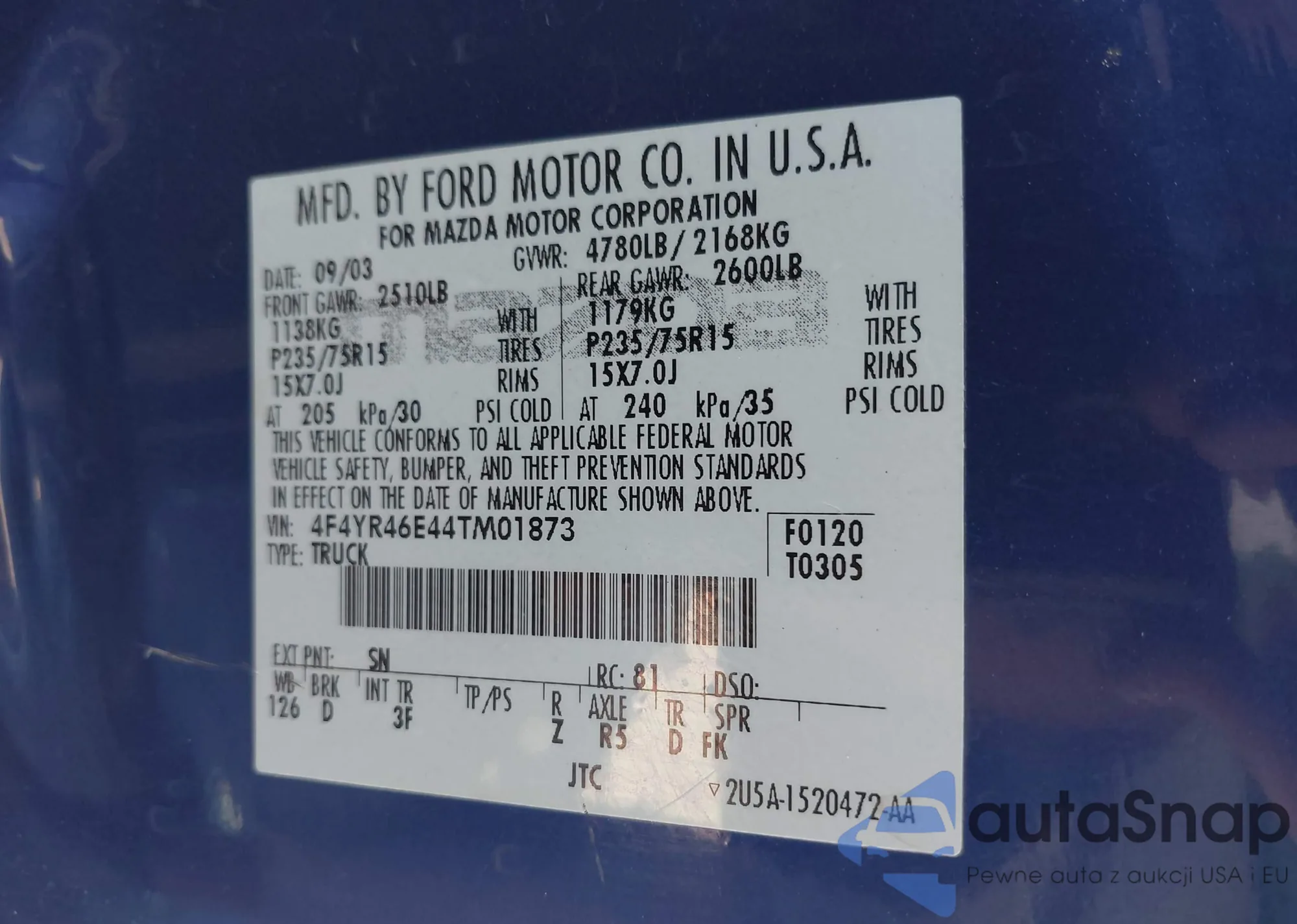 Marka: 2004 Mazda B4000 Ds
