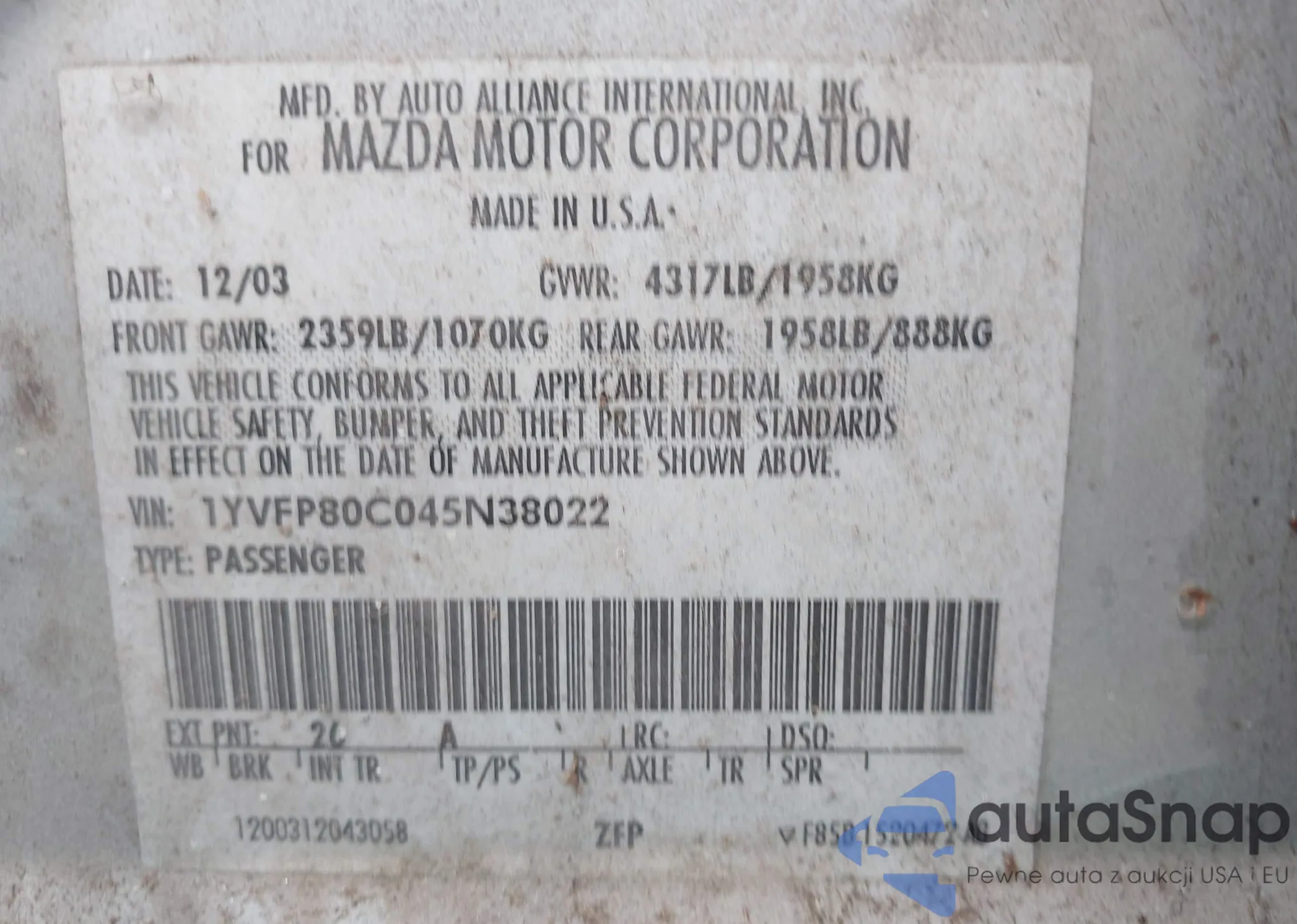 VIN: 1YVFP80C045N38022