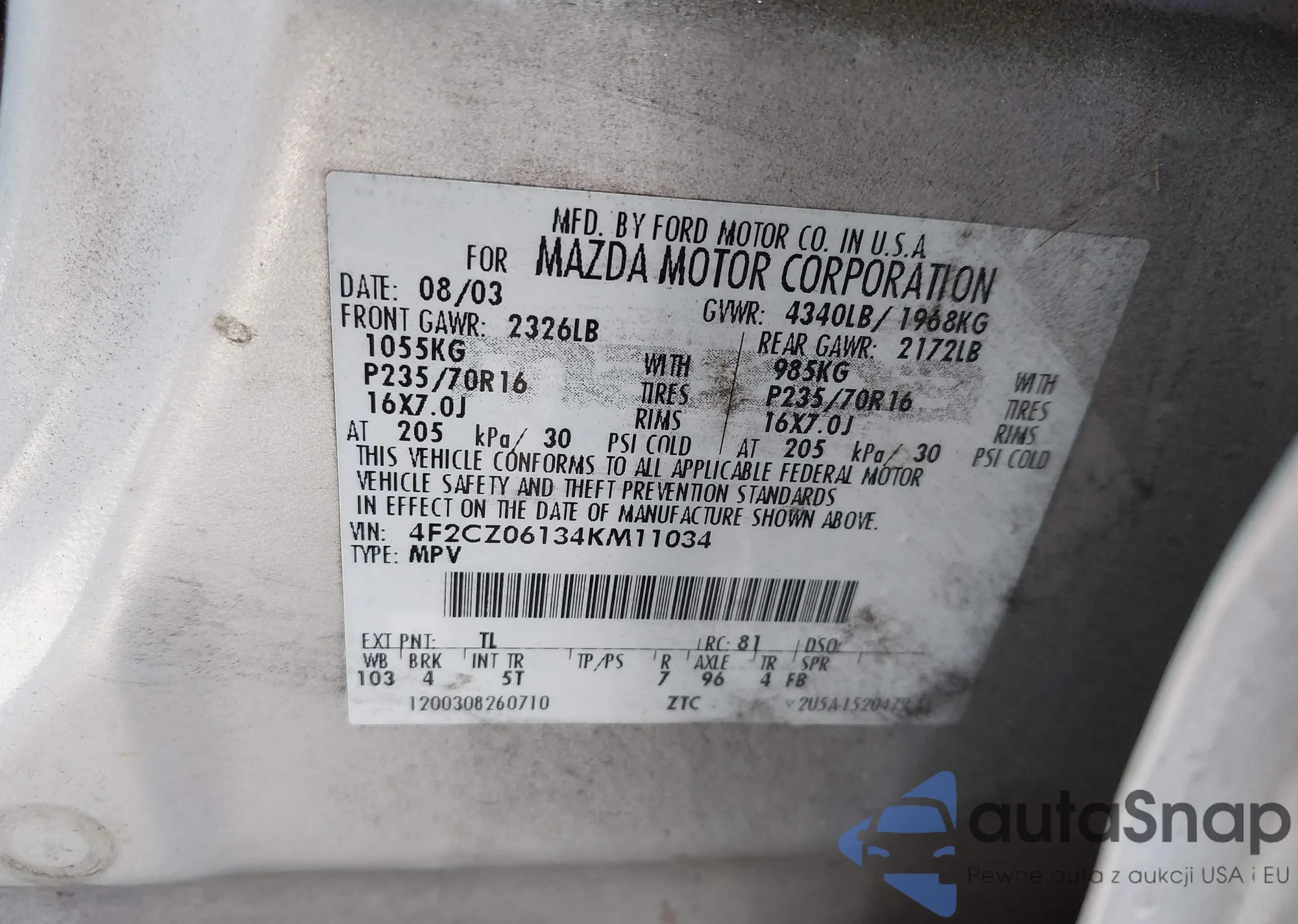 VIN: 4F2CZ06134KM11034