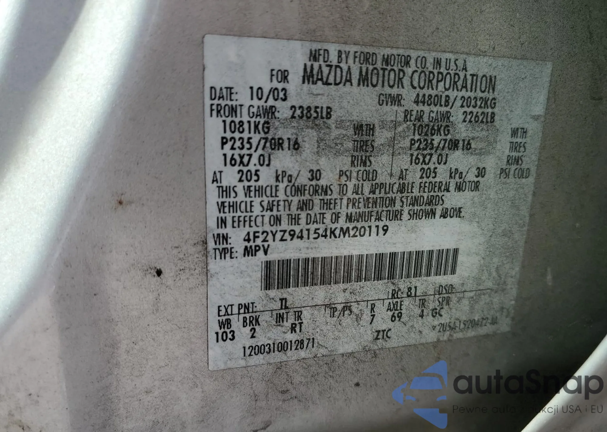 Samochód Mazda Tribute 2004 (VIN 4F2YZ94154KM20119) sprzedaje go niezweryfikowany sprzedawca. Zalecamy raport Carfax i potwierdzenie możliwości rejestracji pojazdu przed zakupem.