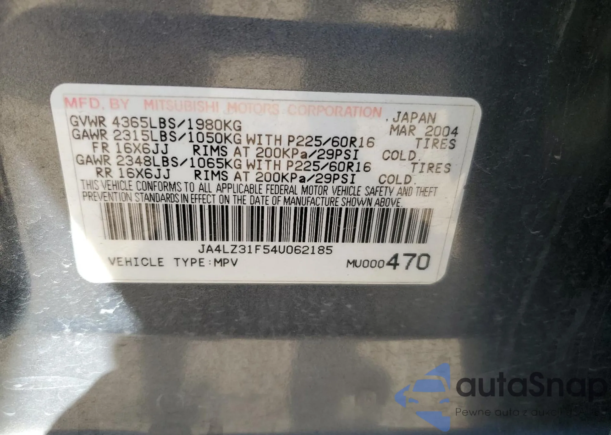 Samochód Mitsubishi Outlander 2004 (VIN JA4LZ31F54U062185) sprzedaje go niezweryfikowany sprzedawca. Zalecamy raport Carfax i potwierdzenie możliwości rejestracji pojazdu przed zakupem.