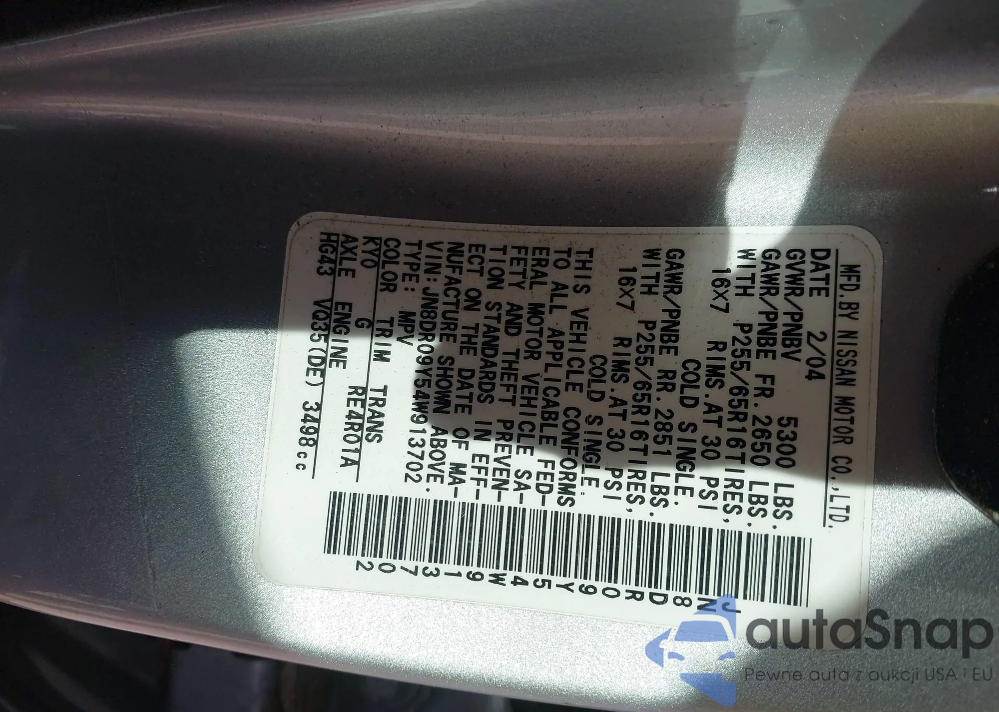 VIN: JN8DR09Y54W913702
