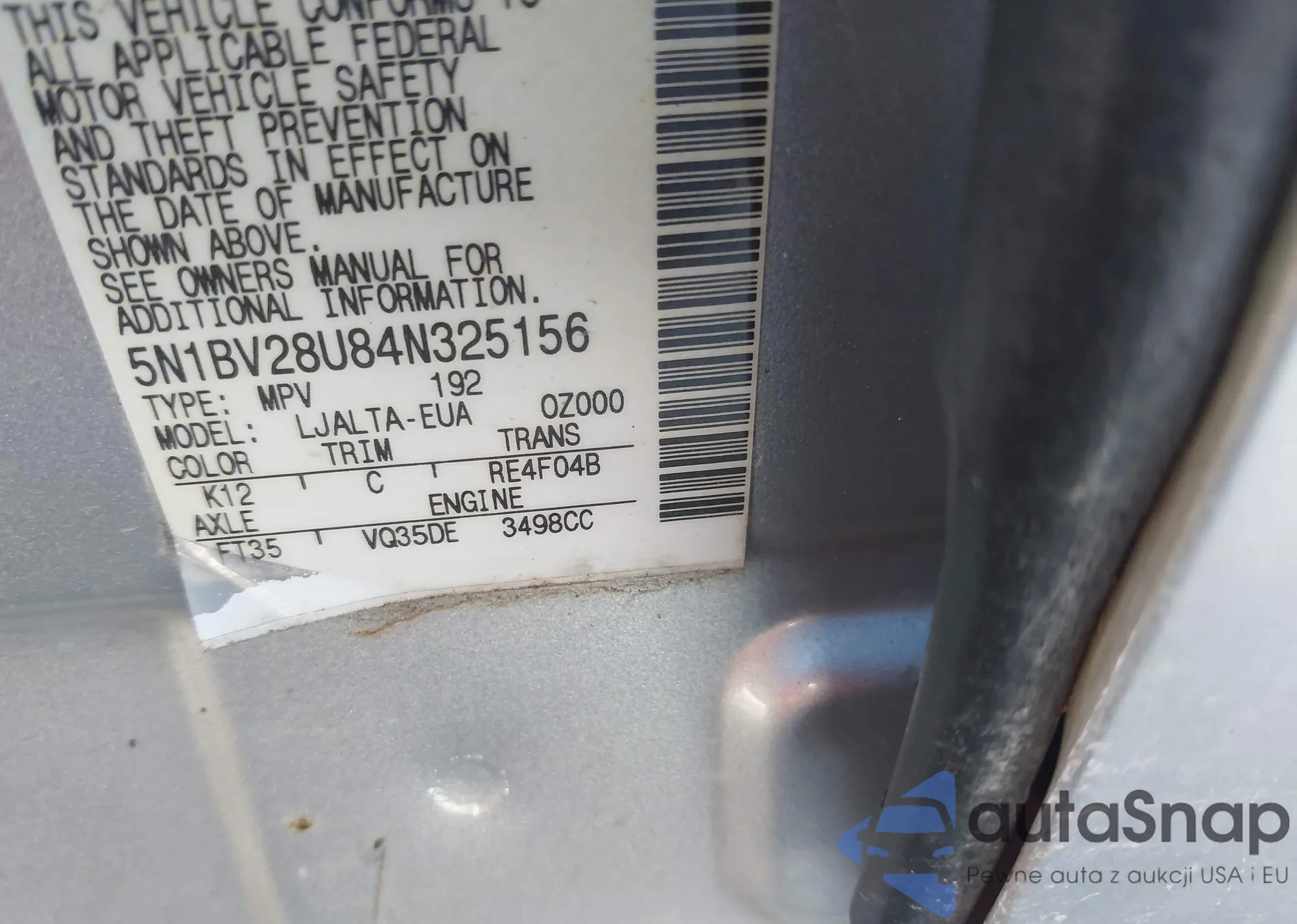 VIN: 5N1BV28U84N325156