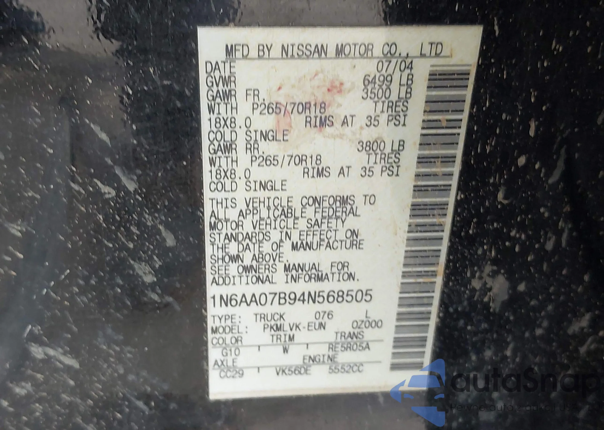 VIN: 1N6AA07B94N568505