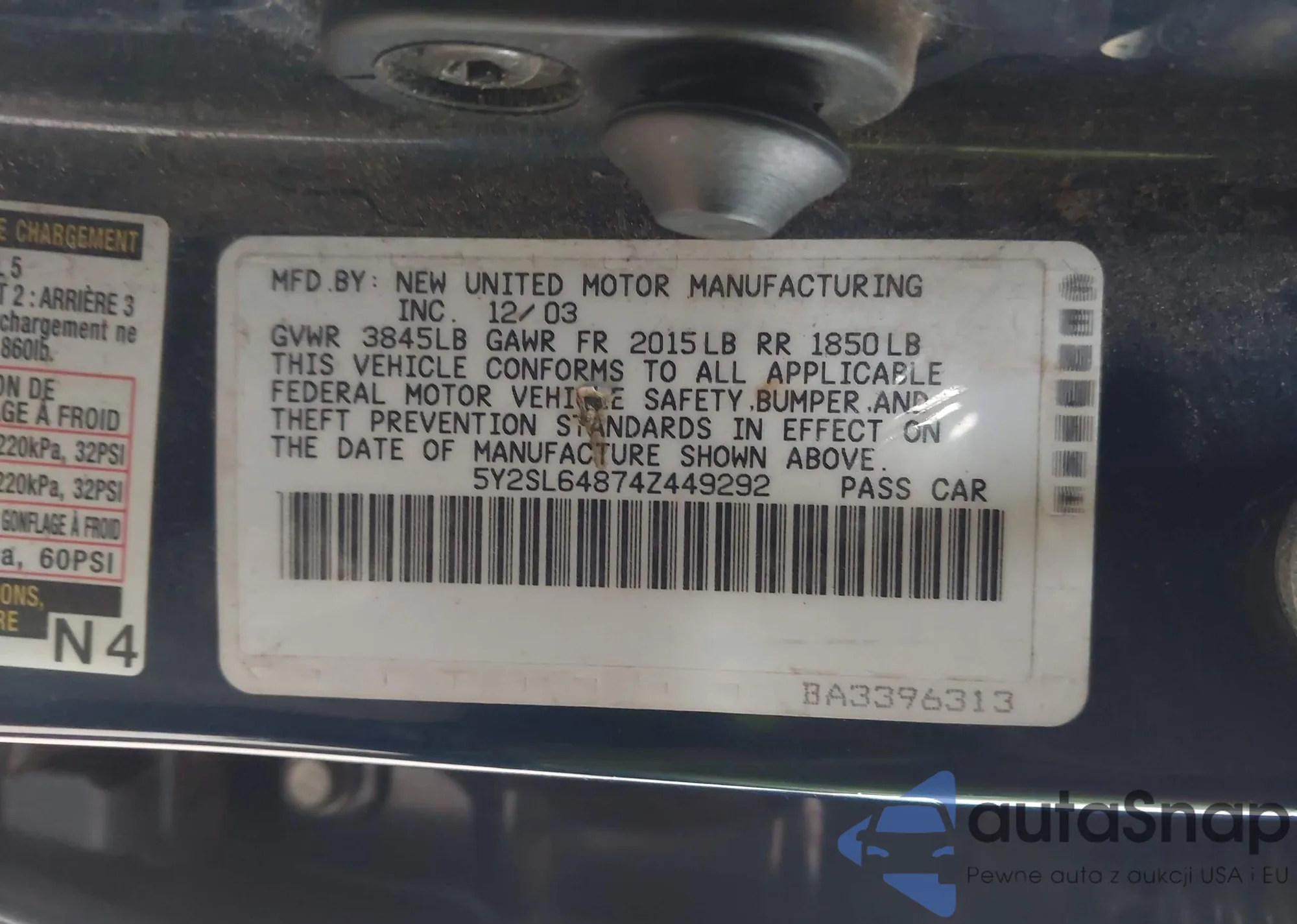 VIN: 5Y2SL64874Z449292