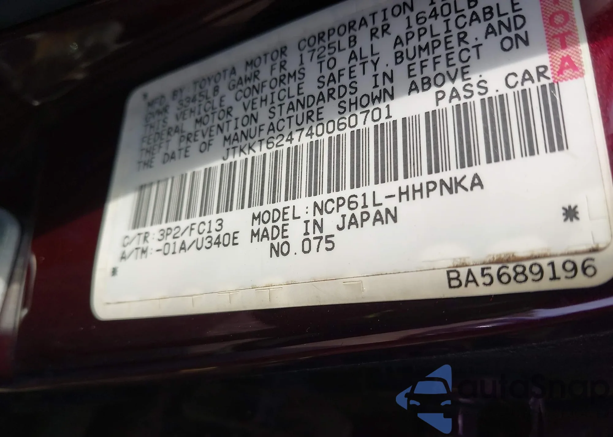 VIN: JTKKT624740060701