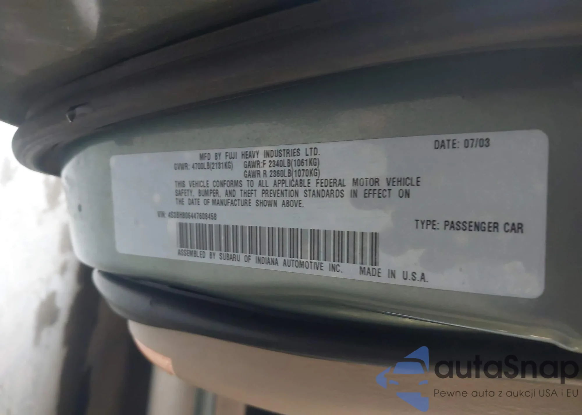 VIN: 4S3BH806447608458