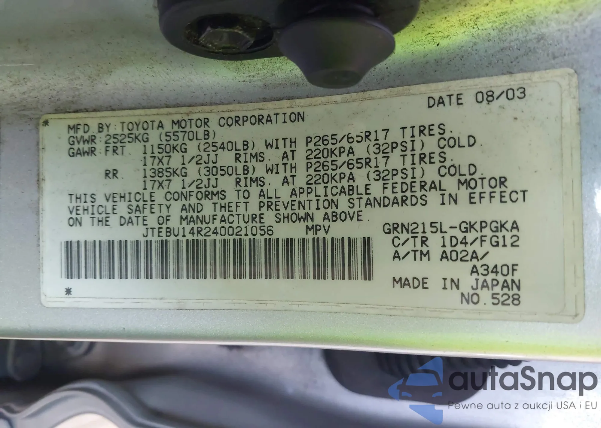 VIN: JTEBU14R240021056