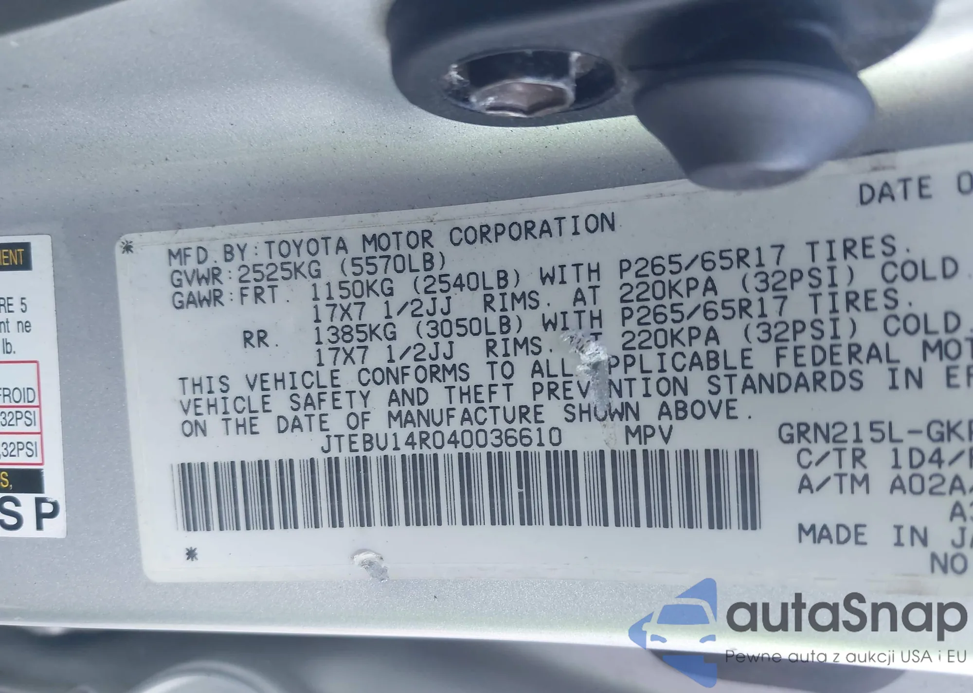 VIN: JTEBU14R040036610
