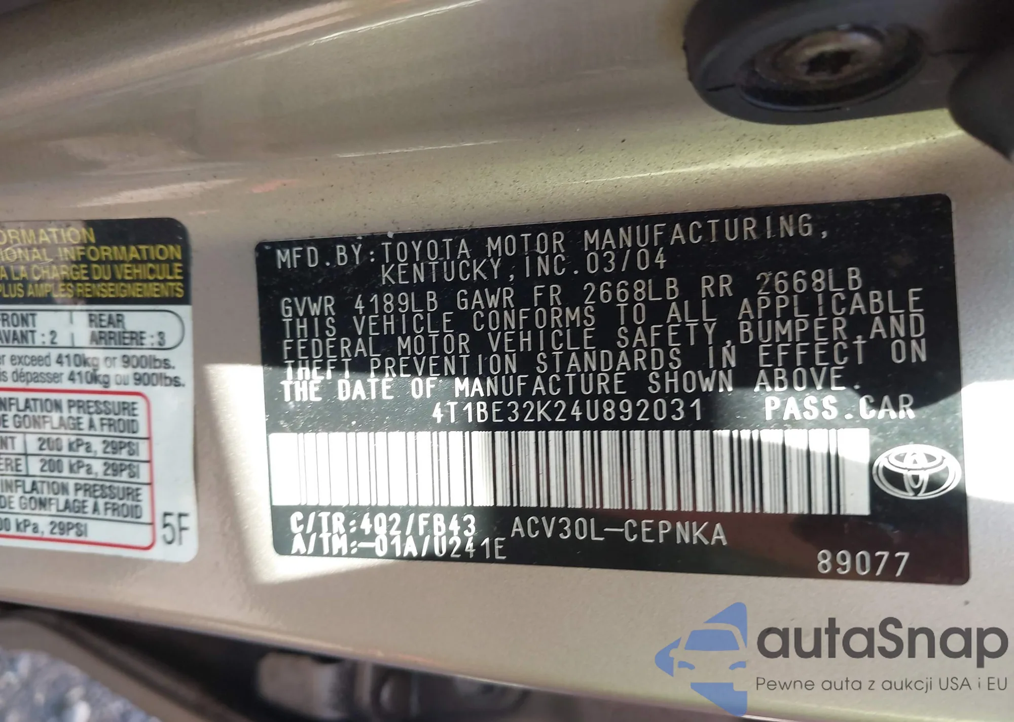 VIN: 4T1BE32K24U892031