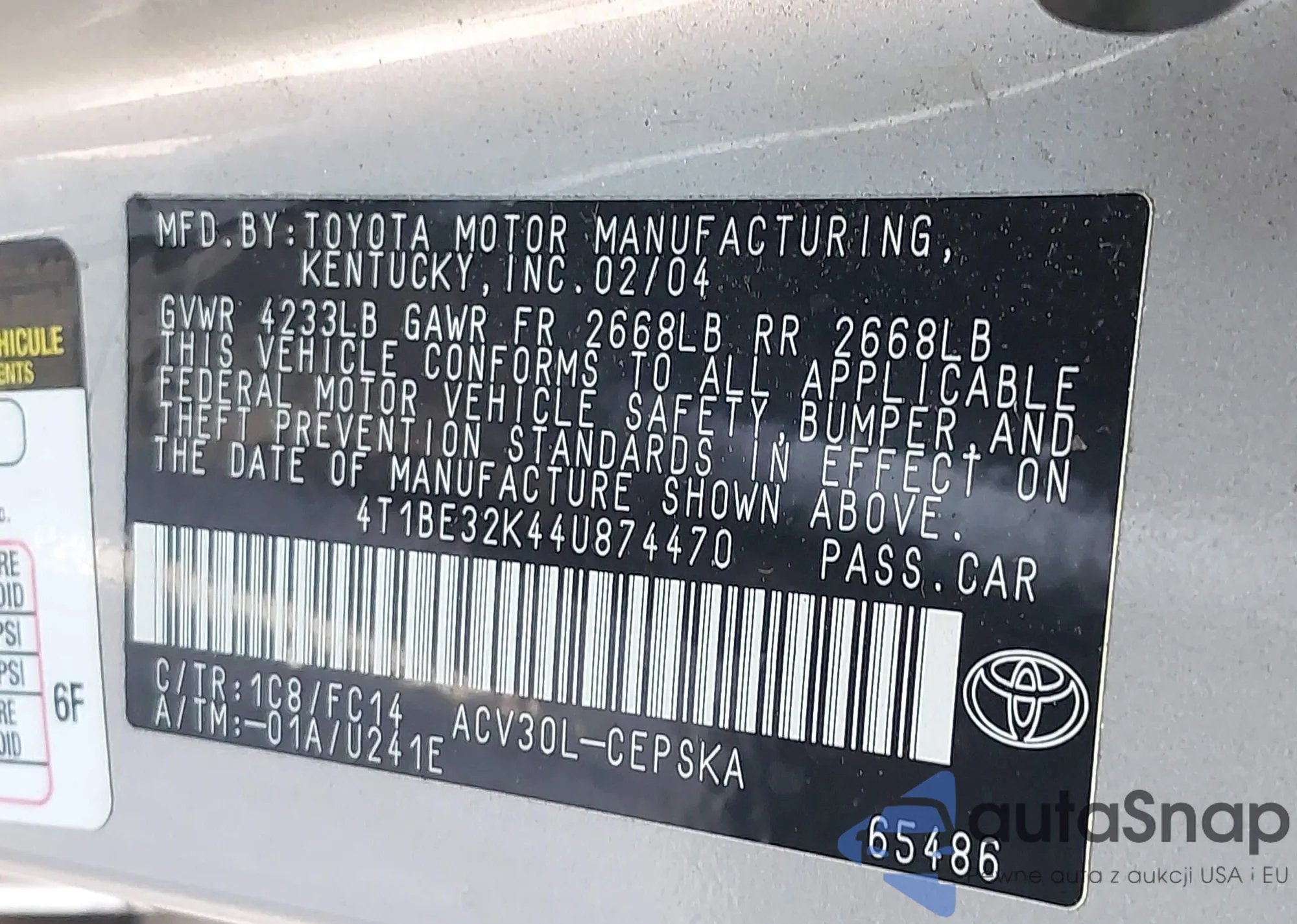 VIN: 4T1BE32K44U874470