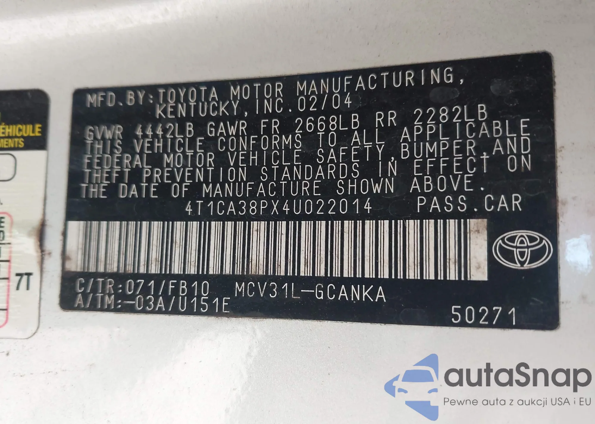 VIN: 4T1CA38PX4U022014