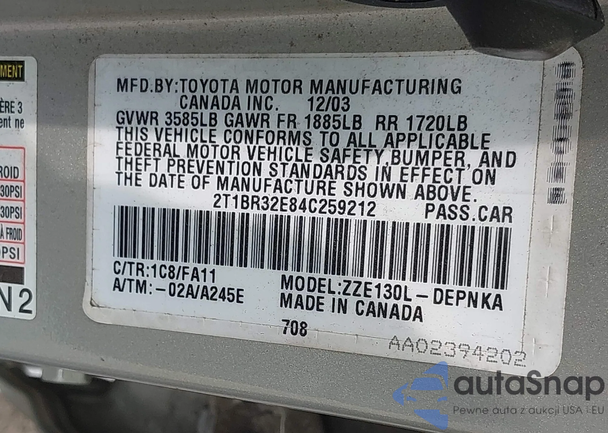 VIN: 2T1BR32E84C259212