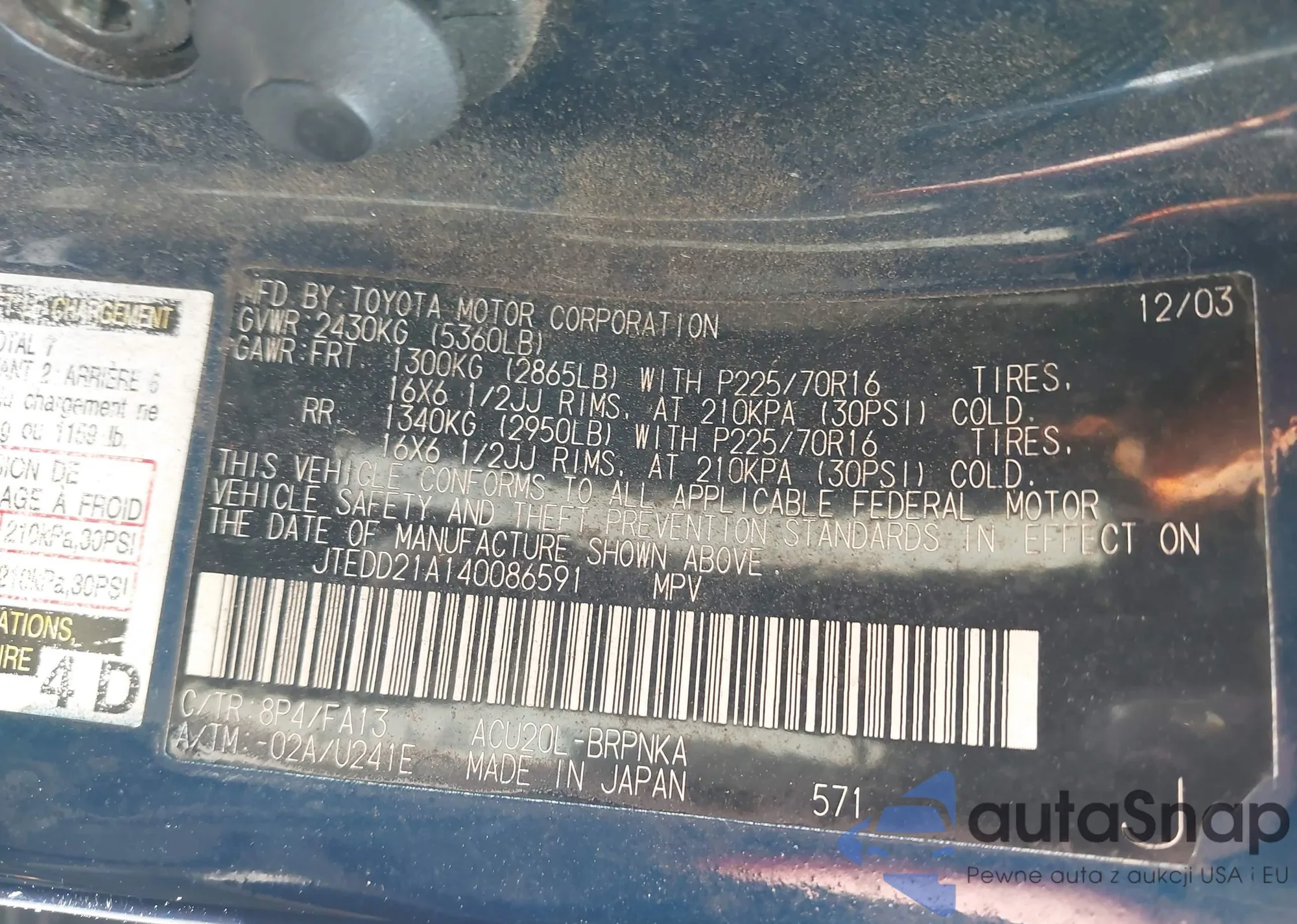 VIN: JTEDD21A140086591