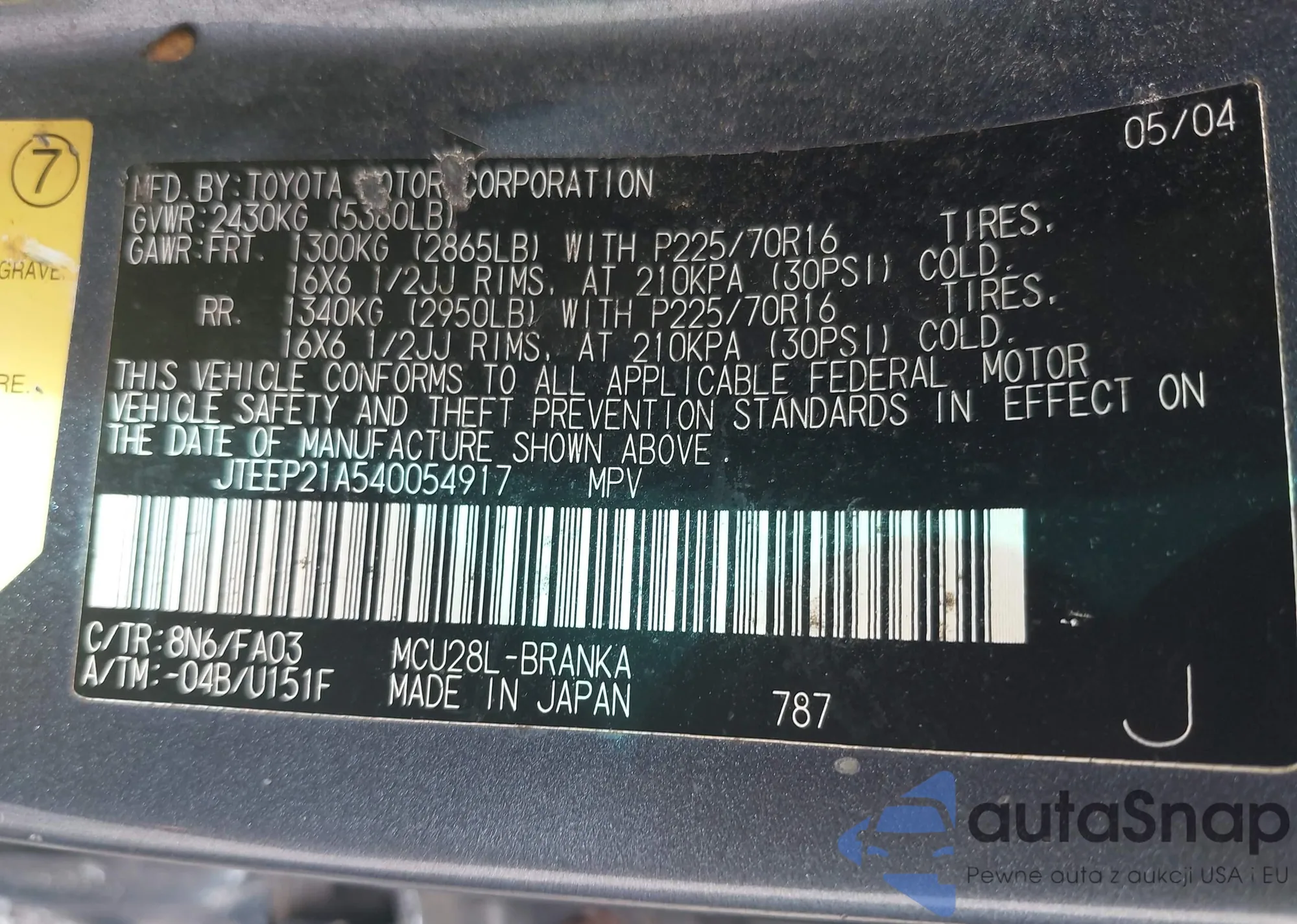 VIN: JTEEP21A540054917