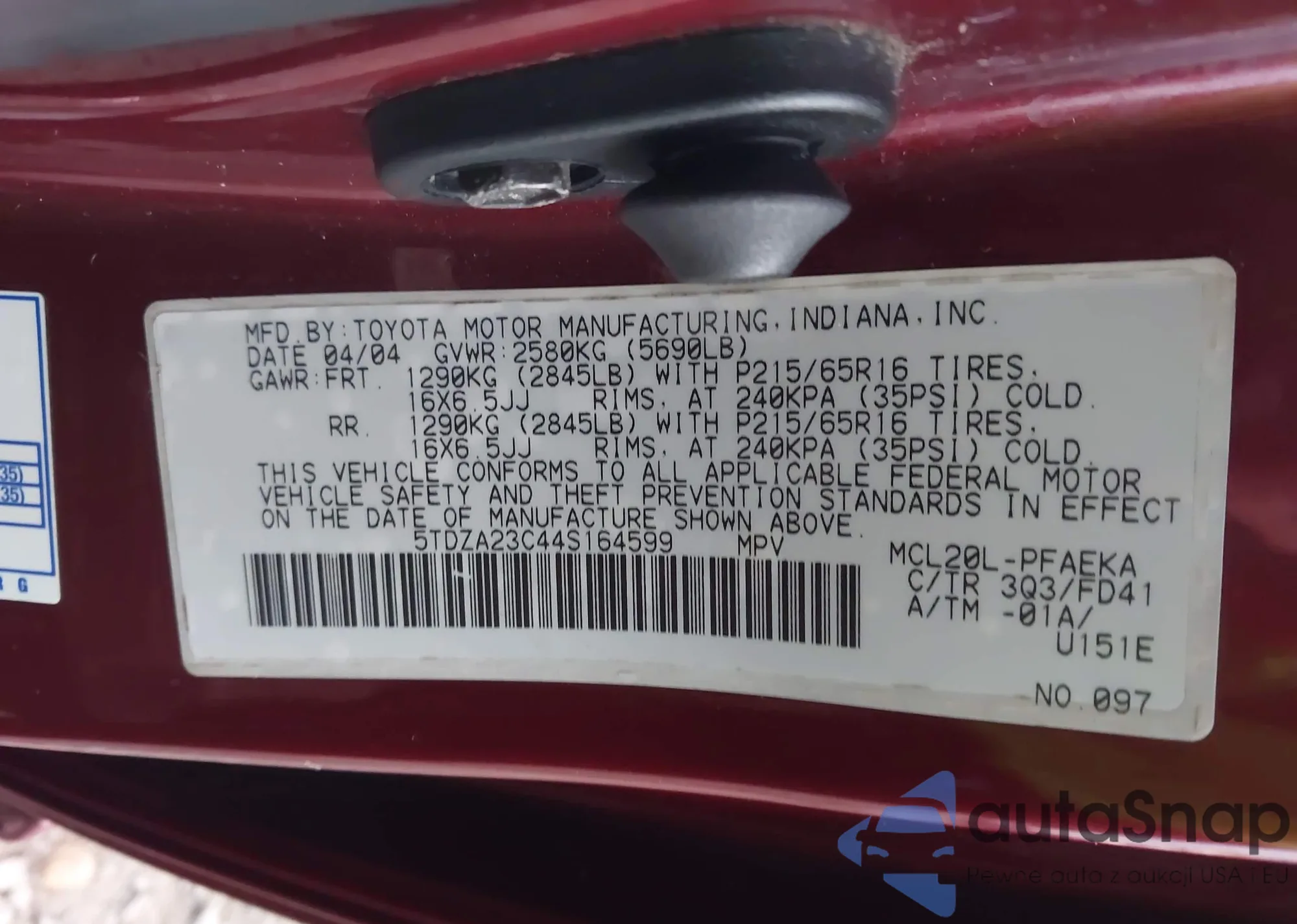 • VIN: 5TDZA23C44S164599