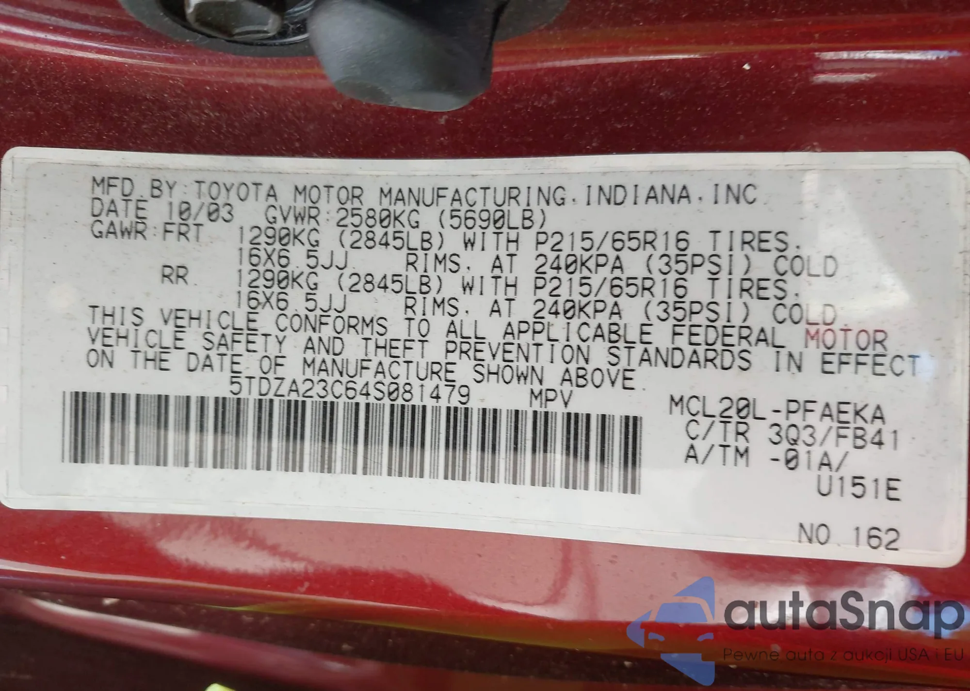 Samochód Toyota Sienna 2004 (VIN 5TDZA23C64S081479) sprzedaje go niezweryfikowany sprzedawca. Zalecamy raport Carfax i potwierdzenie możliwości rejestracji pojazdu przed zakupem.