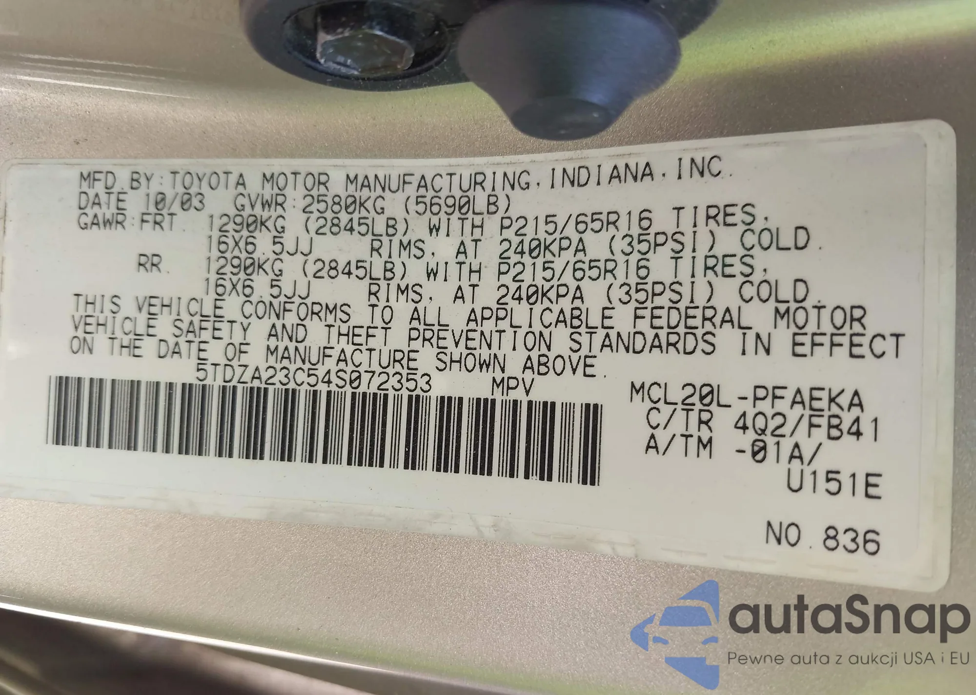 VIN: 5TDZA23C54S072353