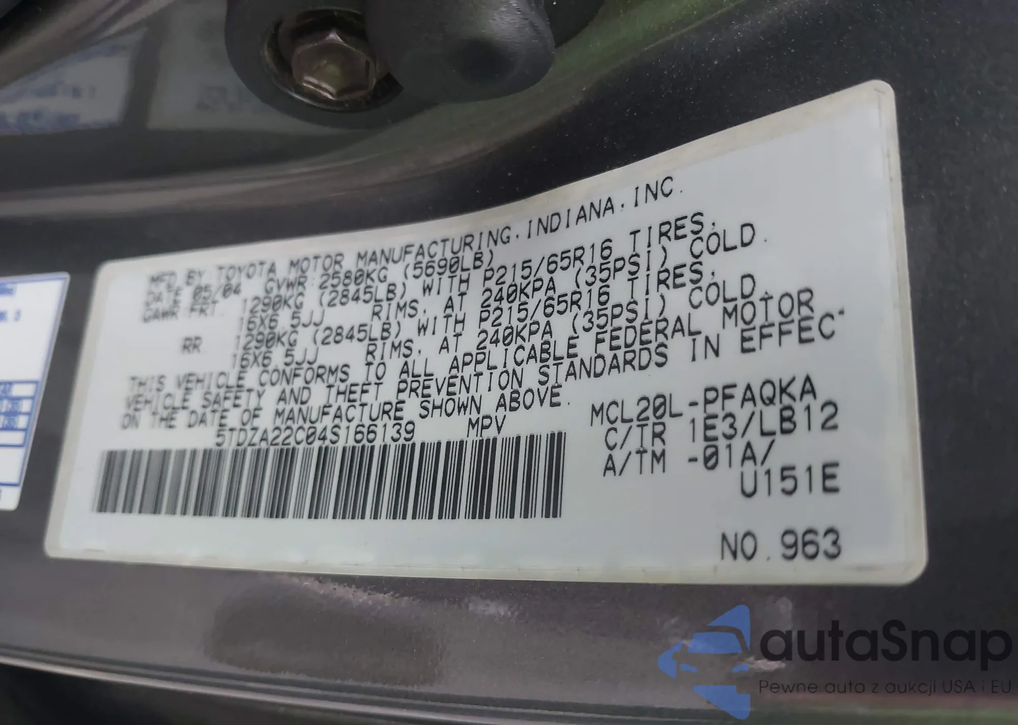 VIN: 5TDZA22C04S166139