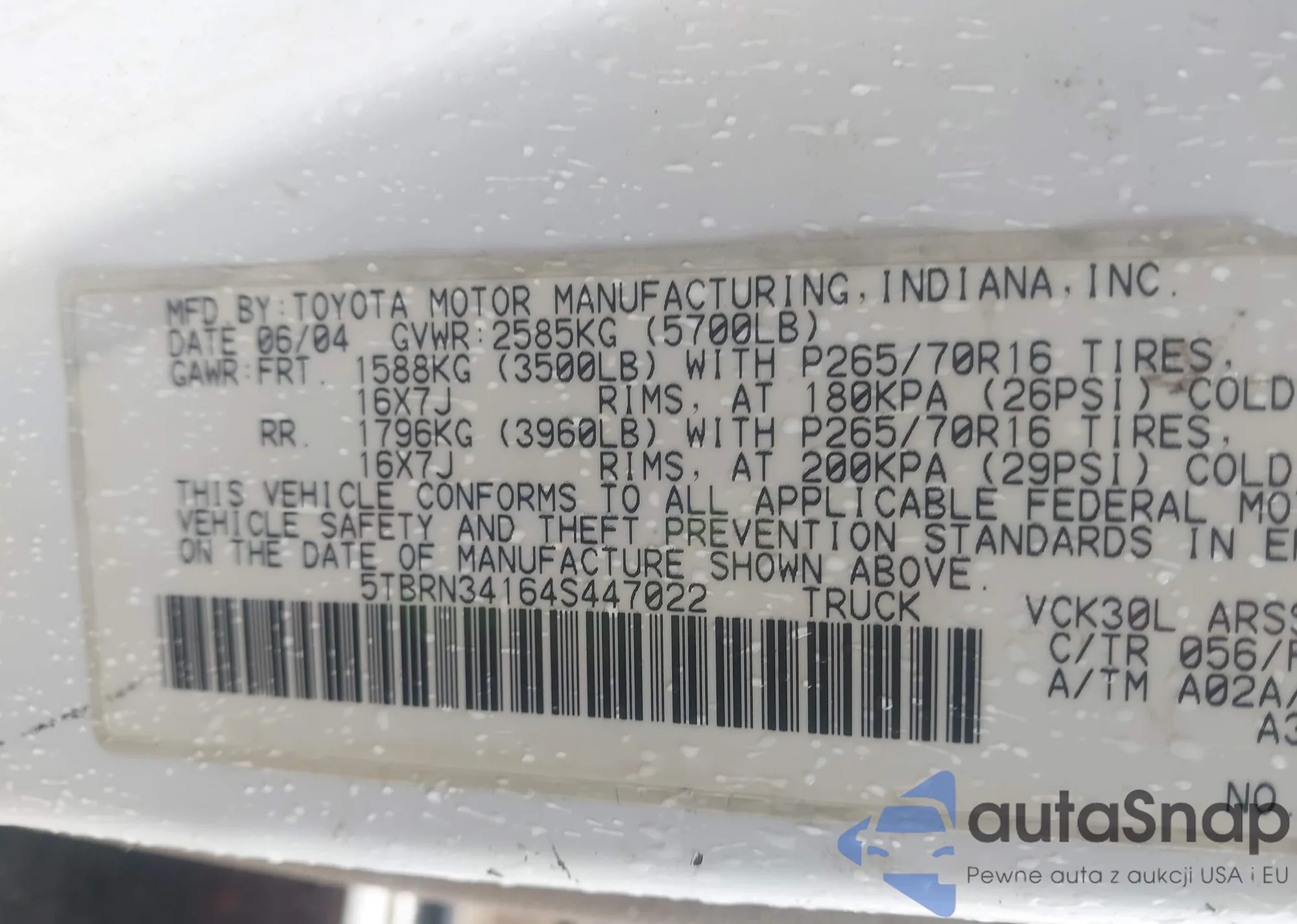 VIN: 5TBRN34164S447022