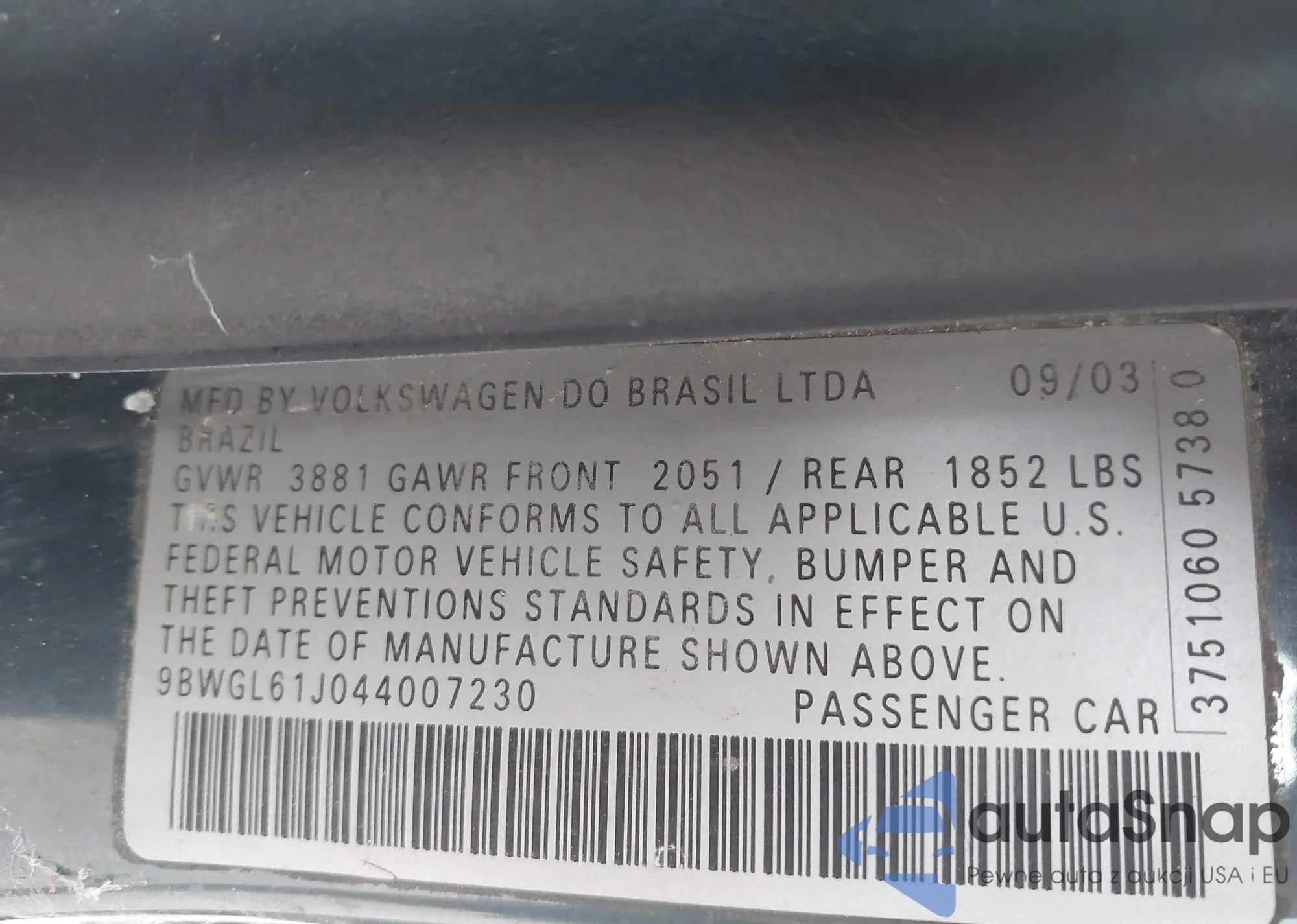 VIN: 9BWGL61J044007230