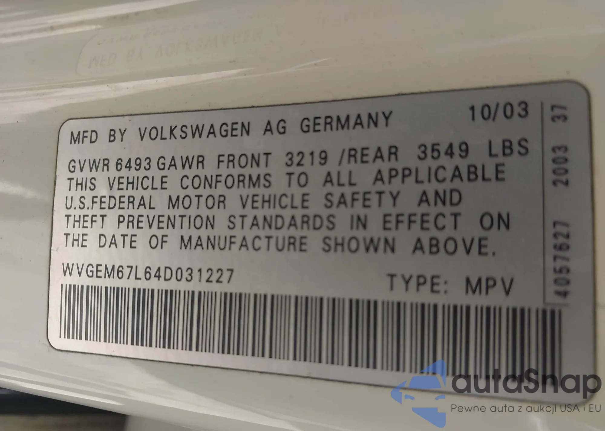 VIN: WVGEM67L64D031227