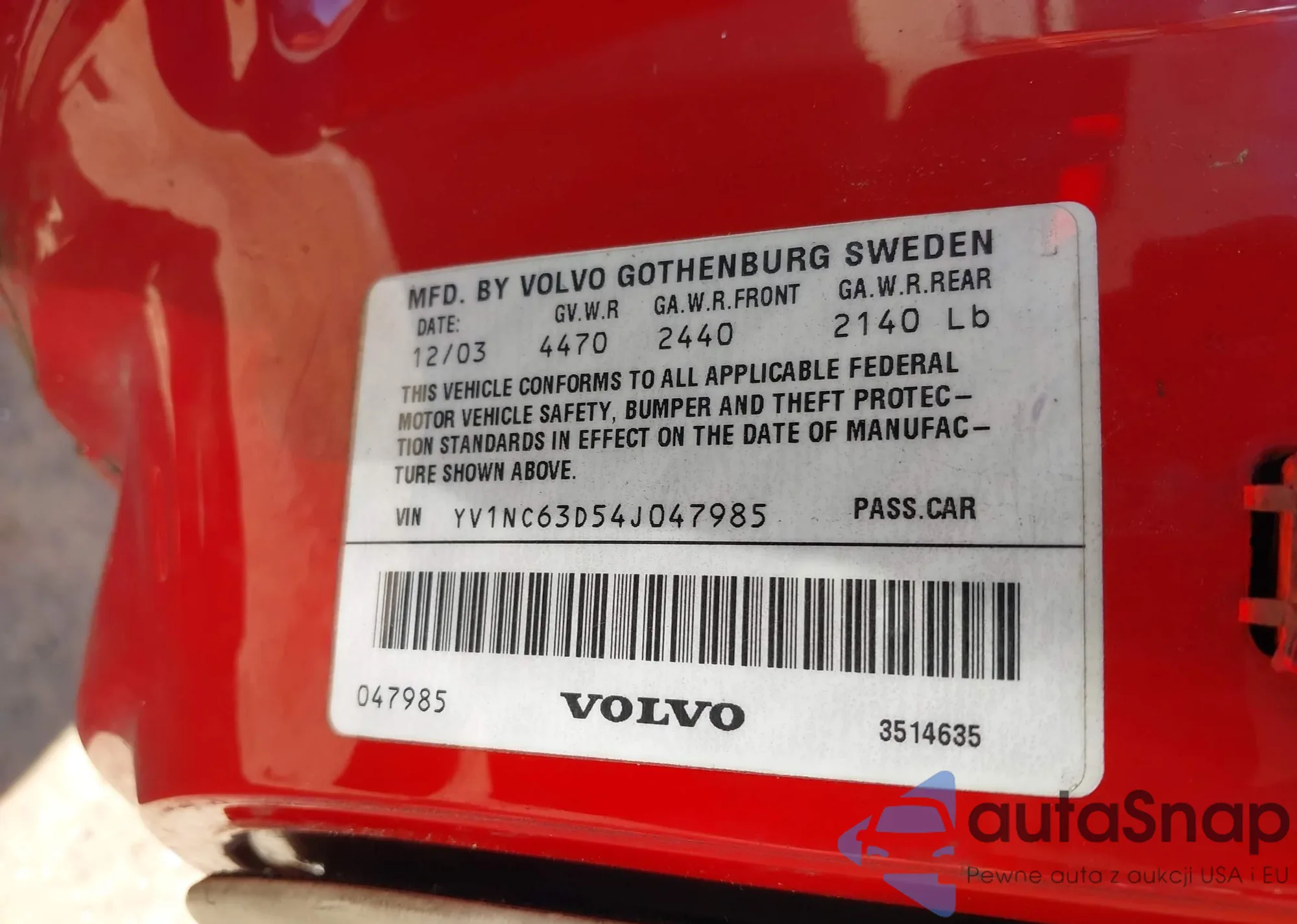 Samochód Volvo C70 2004 (VIN YV1NC63D54J047985) nie był wcześniej licytowany. Dokumenty są czyste, przebieg odpowiada lub jest niższy niż średnia rynku. Sprzedaje go firma ubezpieczeniowa – polecamy zakup. Dostawa do portu zajmie ok. 6–8 tygodni.