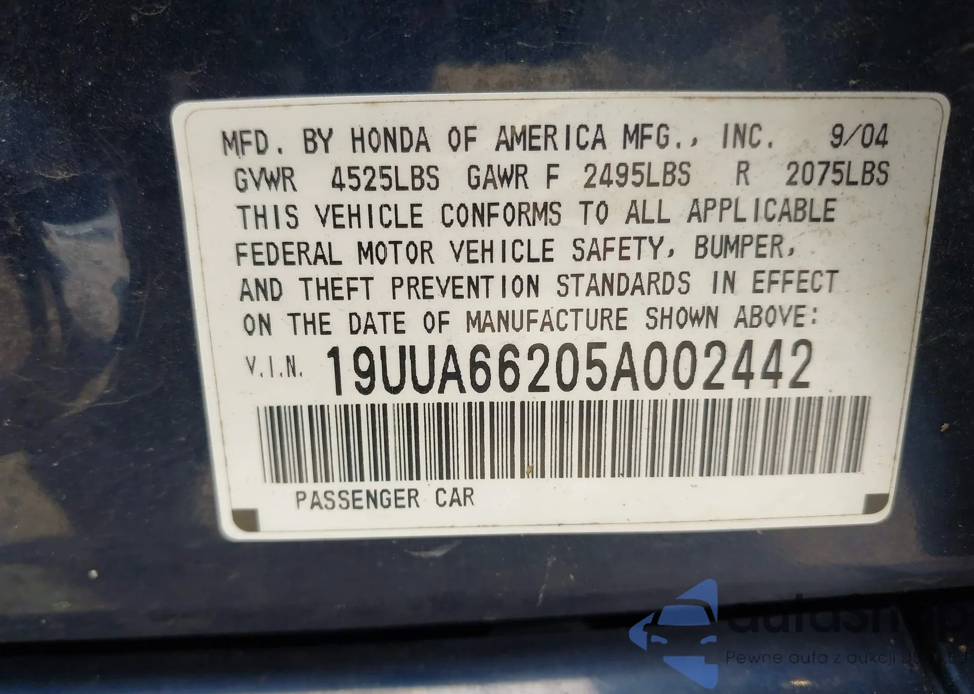 VIN: 19UUA66205A002442