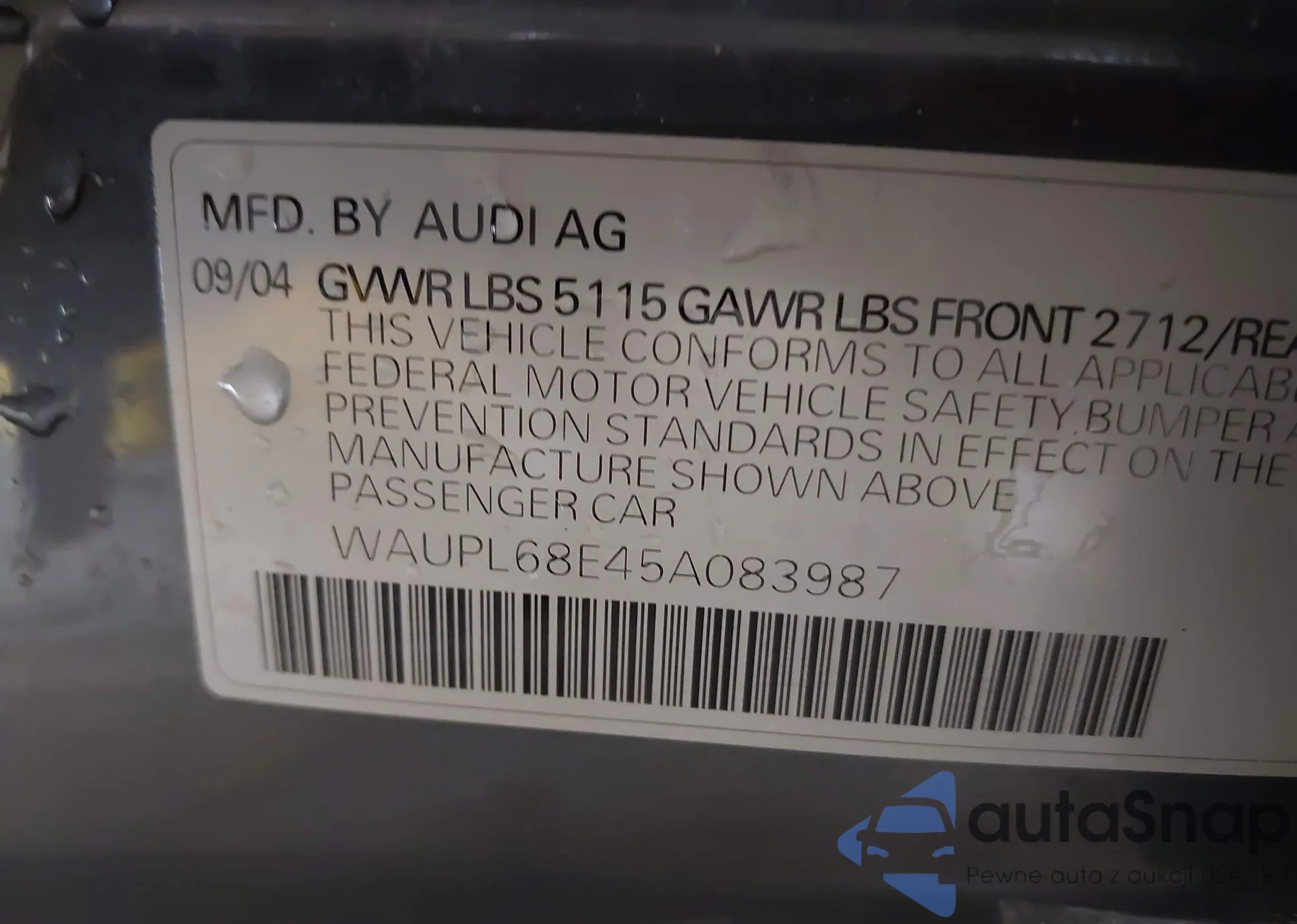 VIN: WAUPL68E45A083987