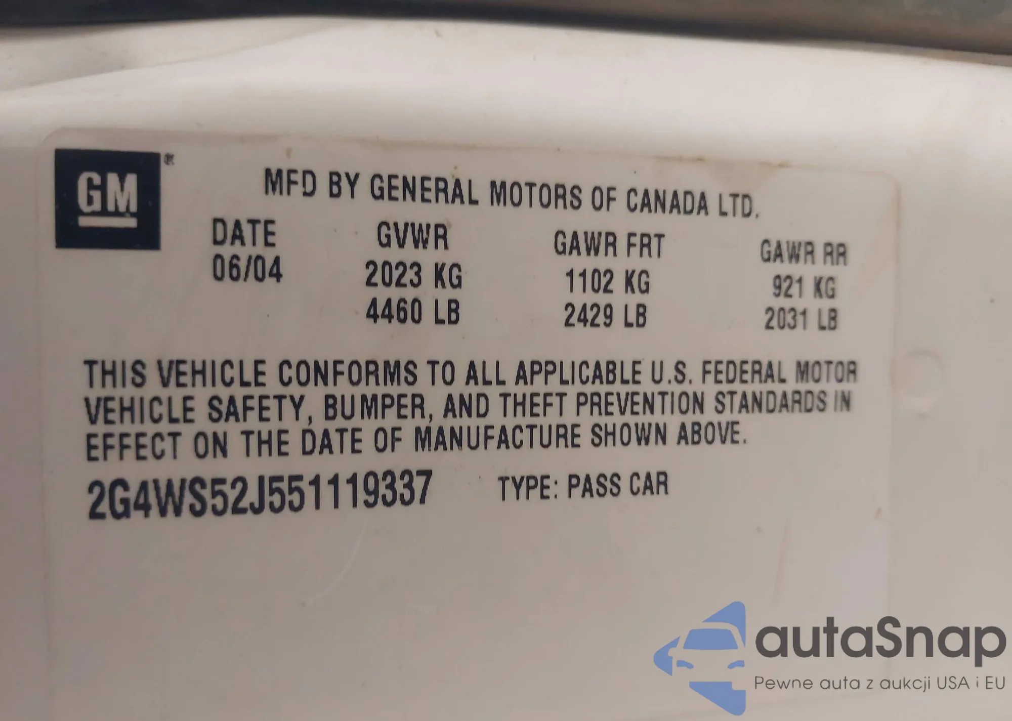 VIN: 2G4WS52J551119337
