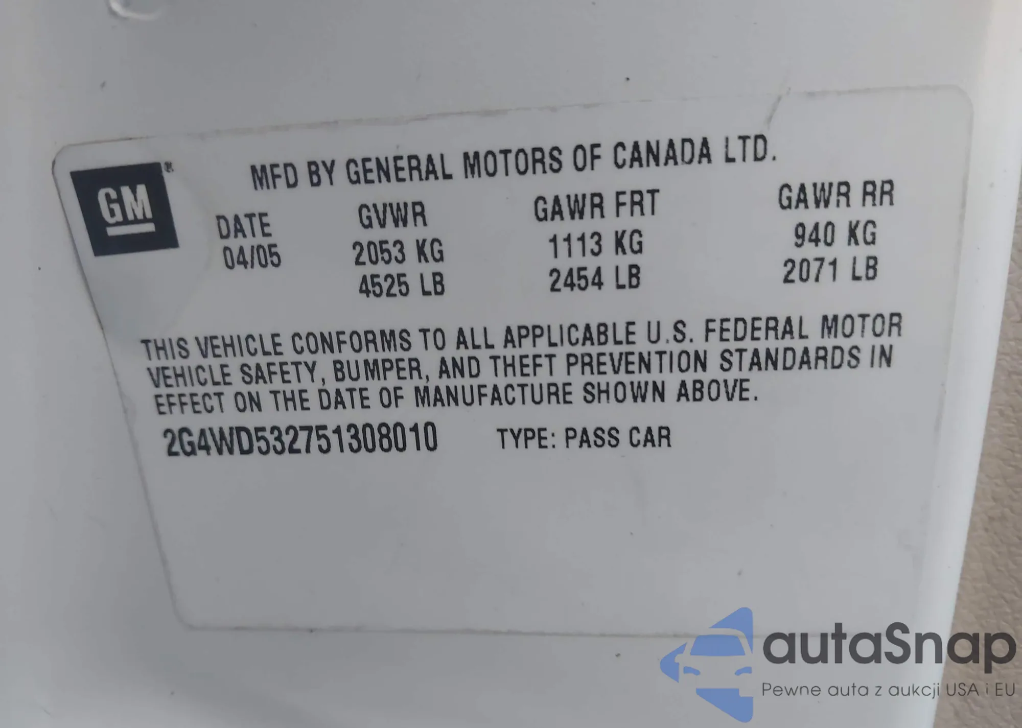 VIN: 2G4WD532751308010