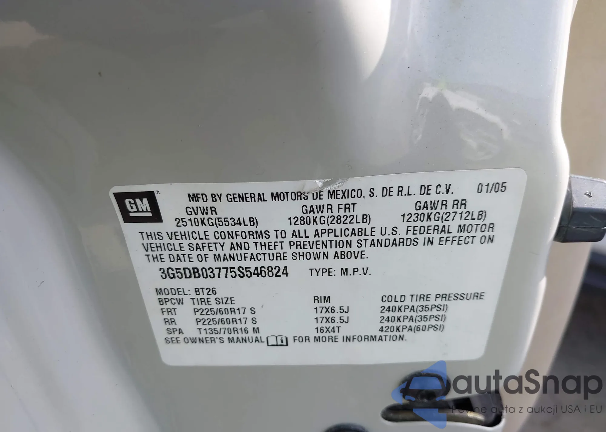 VIN: 3G5DB03775S546824