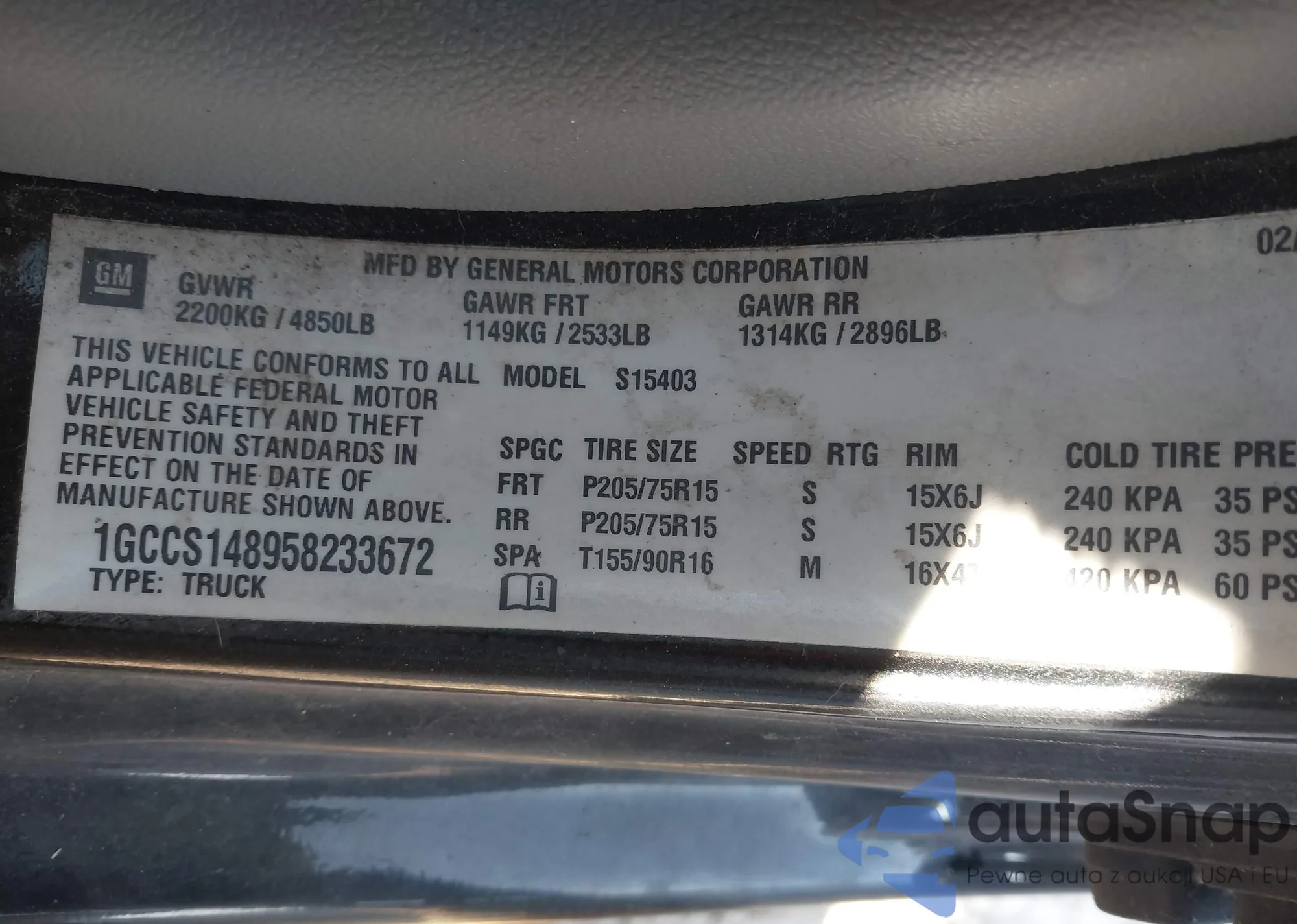 VIN: 1GCCS148958233672