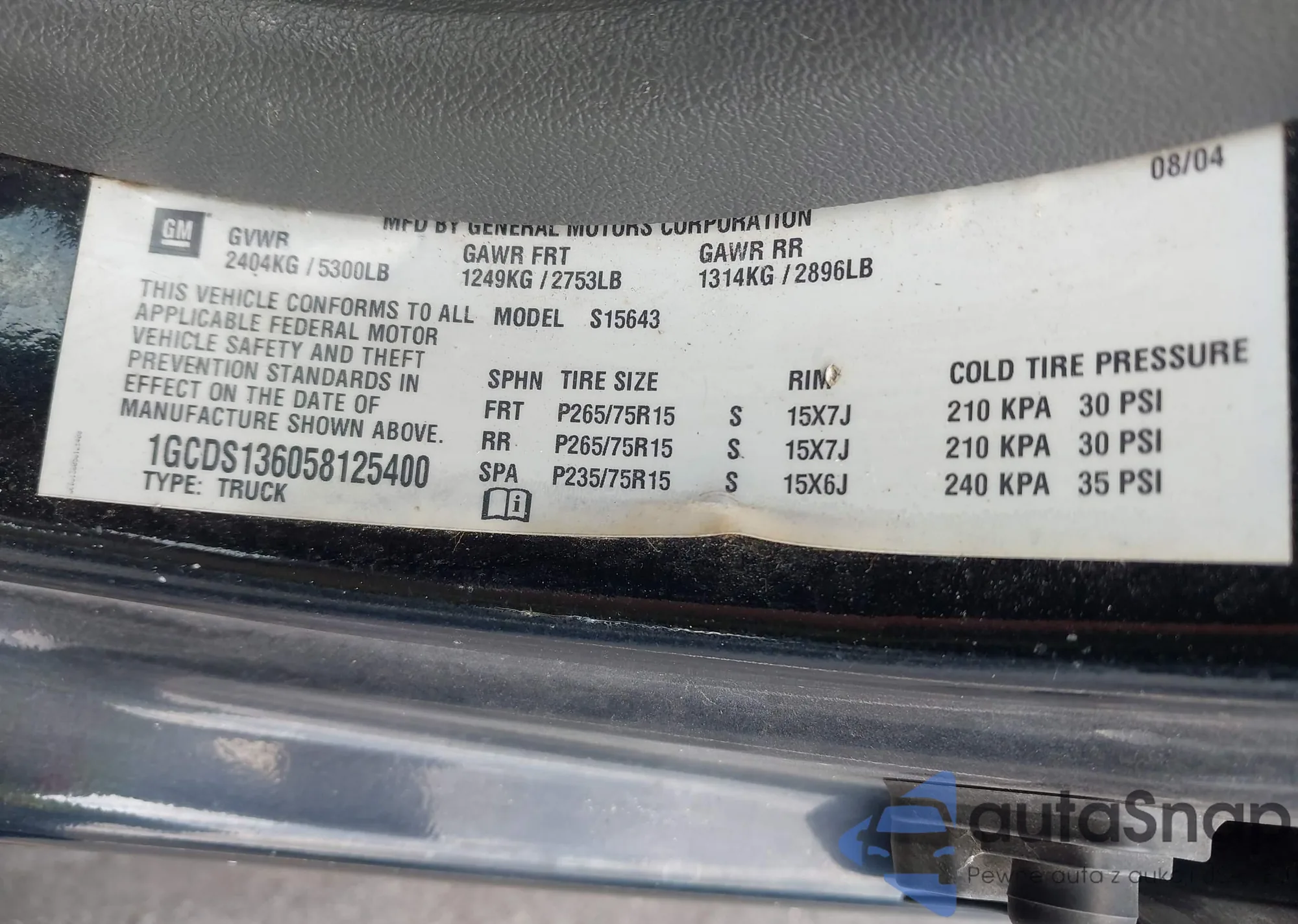 VIN: 1GCDS136058125400
