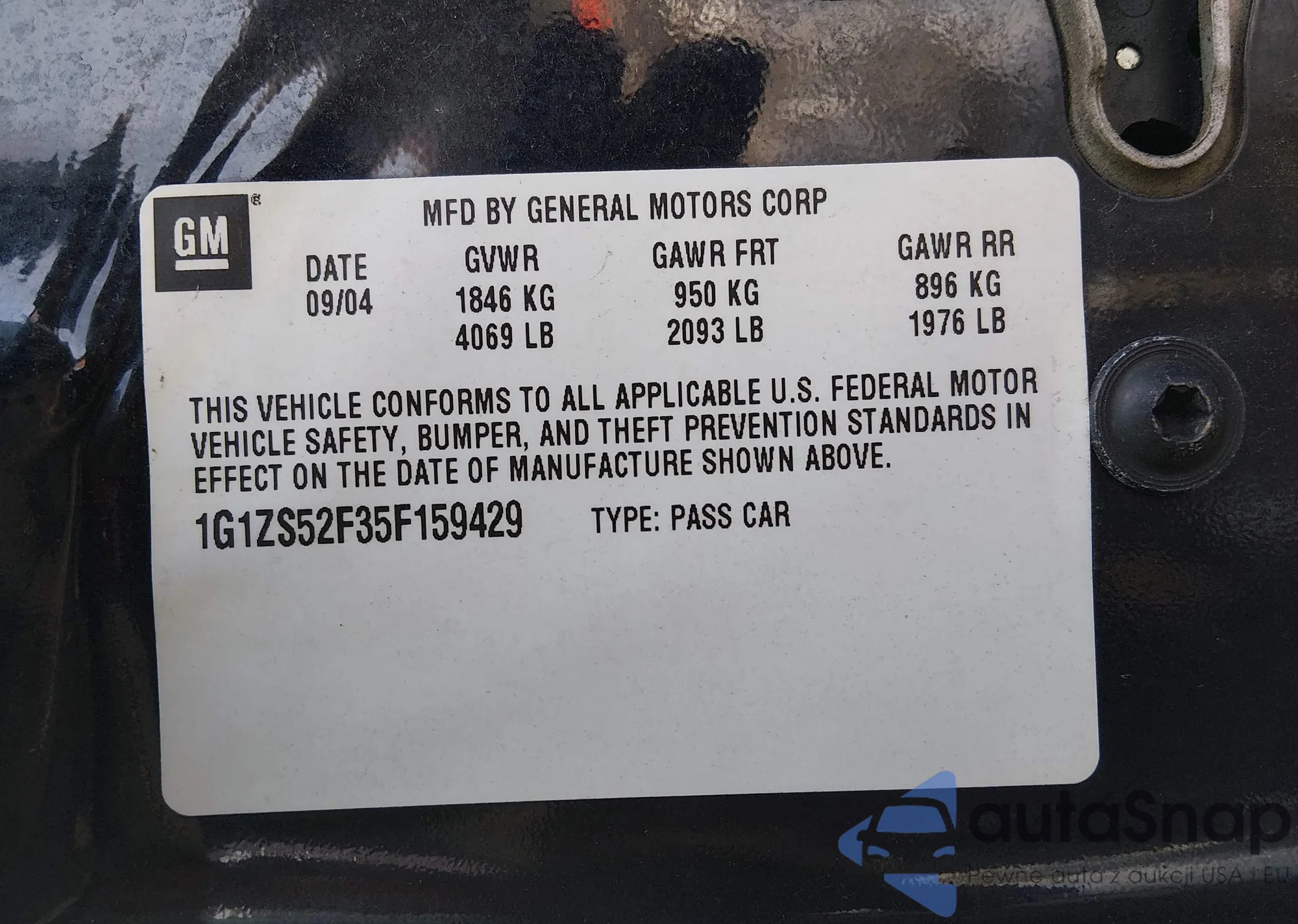 • VIN: 1G1ZS52F35F159429