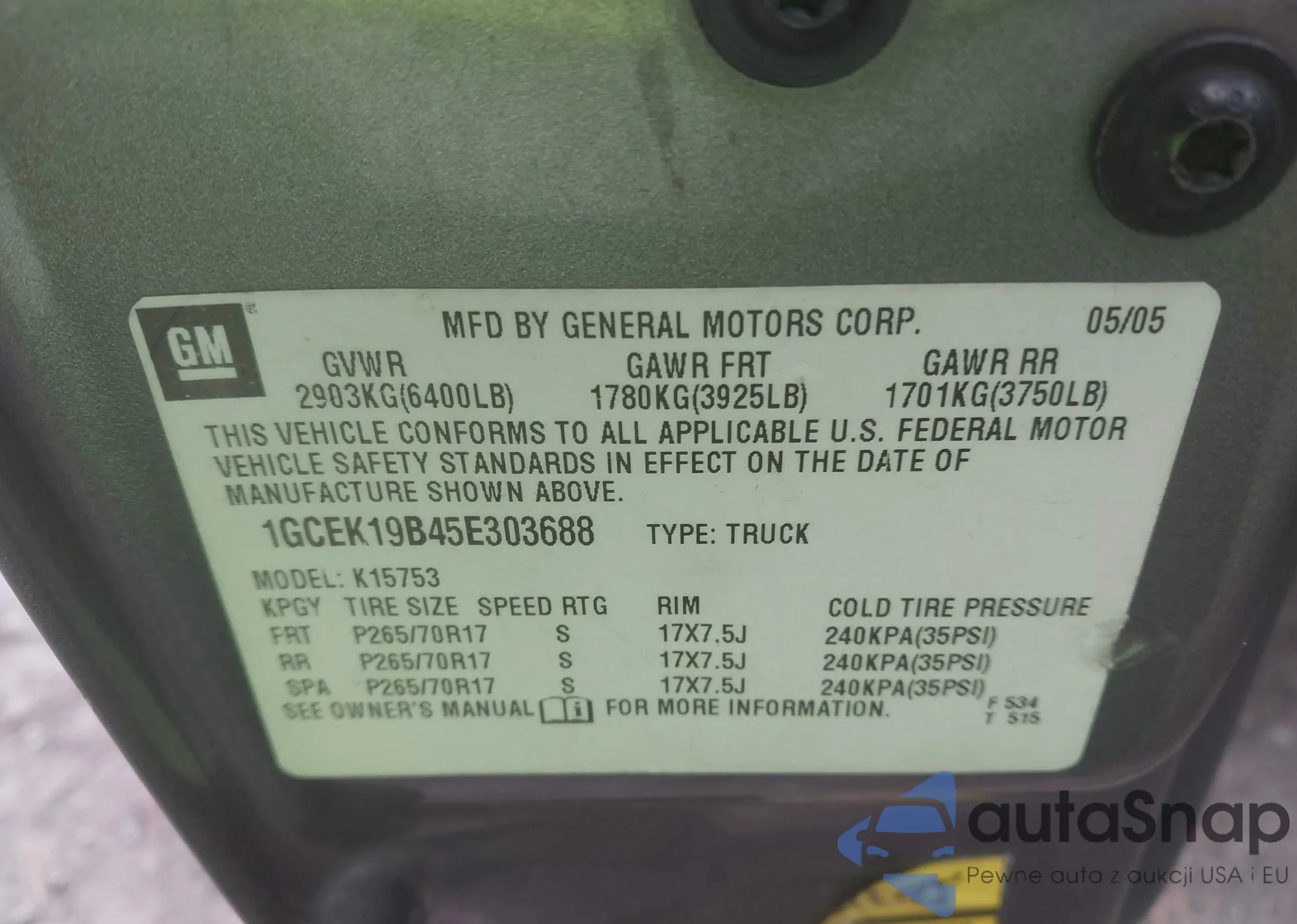 VIN: 1GCEK19B45E303688