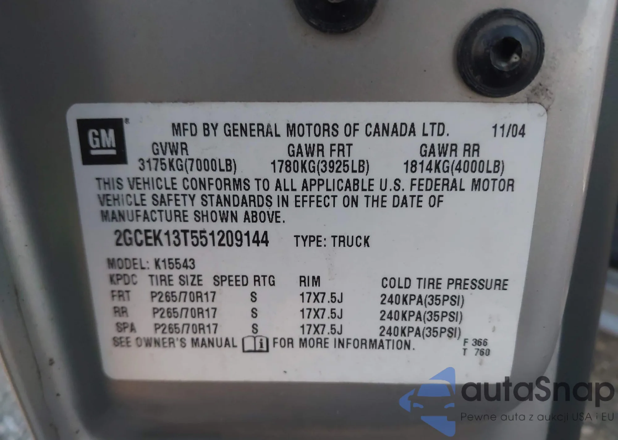 VIN: 2GCEK13T551209144
