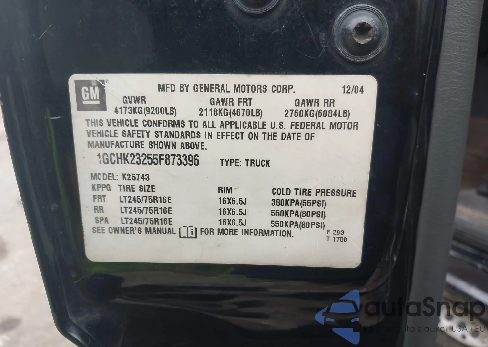 Samochód Chevrolet Silverado 2005 (VIN 1GCHK23255F873396) nie był wcześniej licytowany. Dokumenty są czyste, przebieg odpowiada lub jest niższy niż średnia rynku. Sprzedaje go firma ubezpieczeniowa – polecamy zakup. Dostawa do portu zajmie ok. 6–8 tygodni.