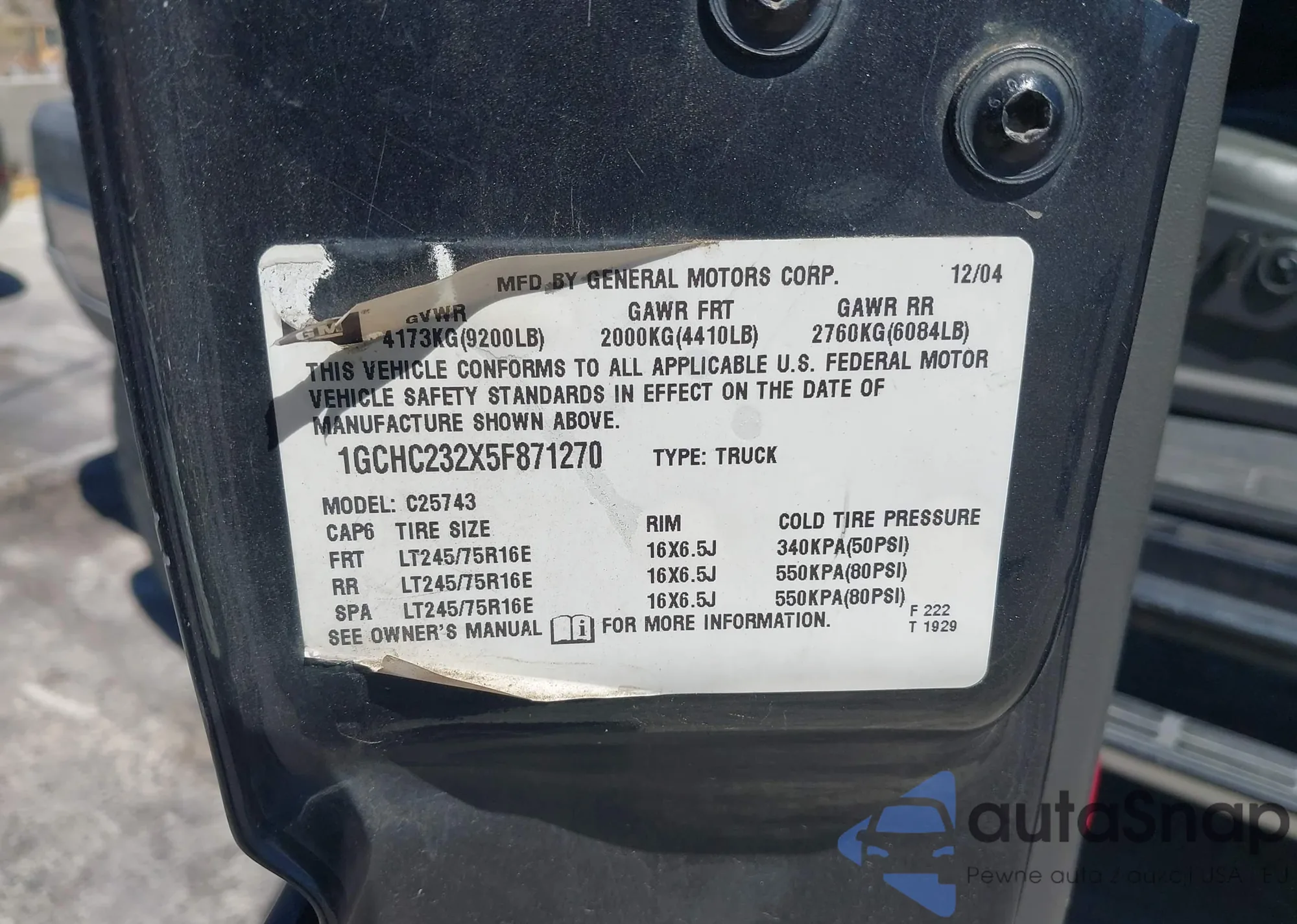 Samochód Chevrolet Silverado 2005 (VIN 1GCHC232X5F871270) nie był wcześniej licytowany. Dokumenty są czyste, przebieg odpowiada lub jest niższy niż średnia rynku. Sprzedaje go firma ubezpieczeniowa – polecamy zakup. Dostawa do portu zajmie ok. 6–8 tygodni.