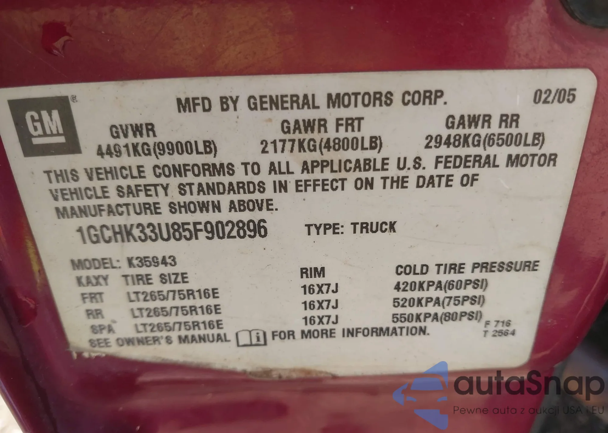 VIN: 1GCHK33U85F902896