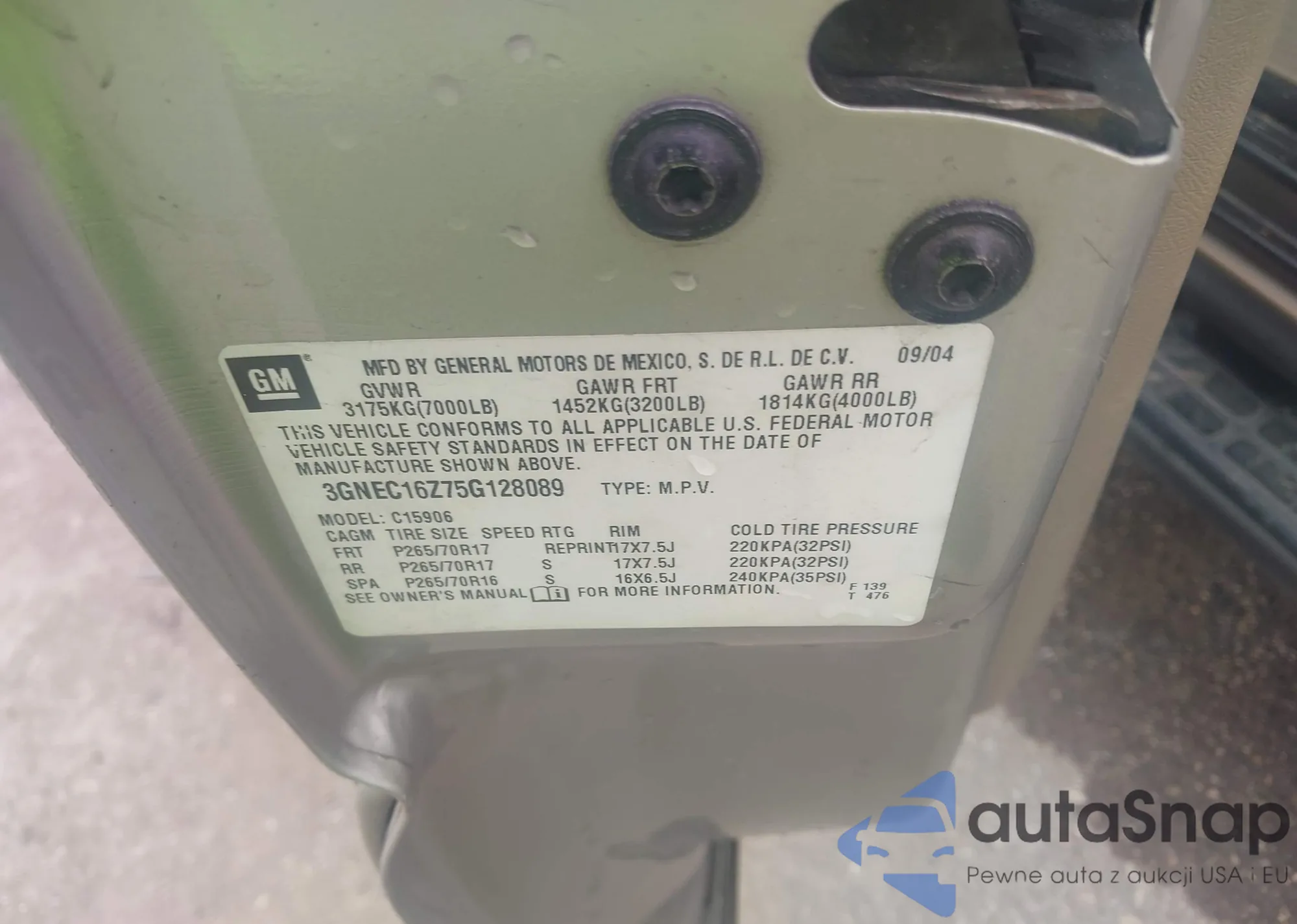 VIN: 3GNEC16Z75G128089